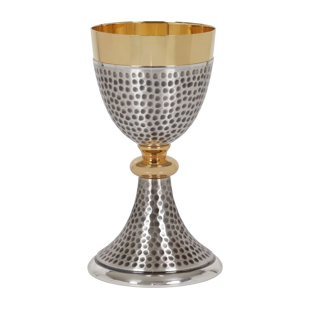 Calice liturgico in ottone martellato con finitura bicolore oro e argento. Articolo interamente made in Itay.