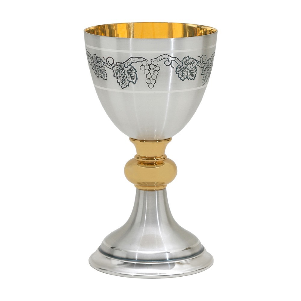 Calice liturgico in metallo bicolore incisa a cesello raffigurante dei grappoli d'uva. Articolo interamente made in Italy.