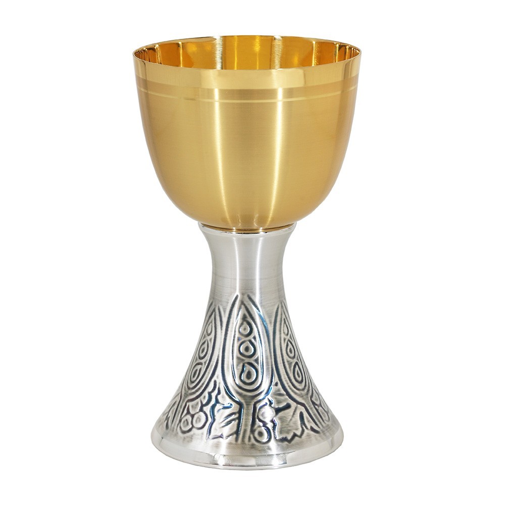 Calice liturgico in ottone bicolore, h 20 cm.