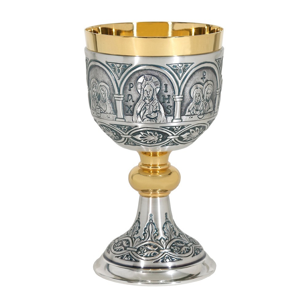 Calice in ottone dorato e argentato raffigurante l'Ultima Cena.