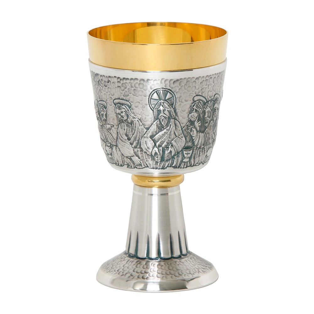 Calice in ottone dorato e argentato raffigurante l'Ultima Cena.