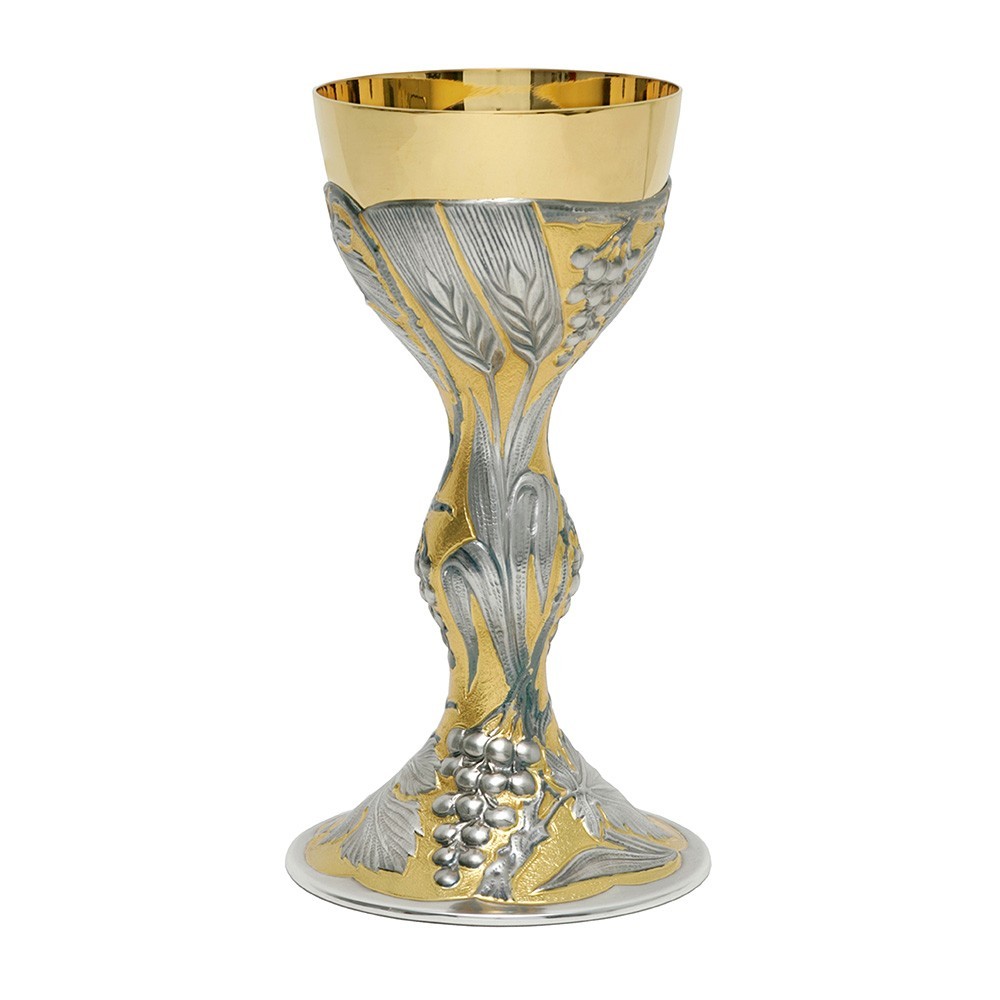 Set di calice, pisside e patena per la Santa Messa. Questo bellissimo coordinato per altare è realizzato in ottone bicolore cesellato interamente a mano. Articolo di grande pregio eseguito interamente da un'azienda italiana.