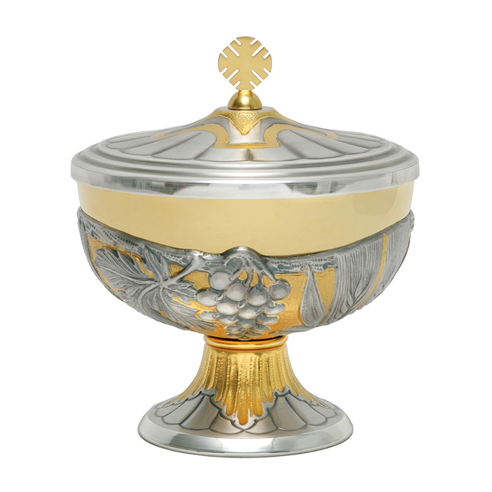 Calice e Pisside in ottone dorato e con petre incastonate.