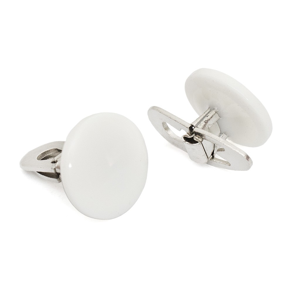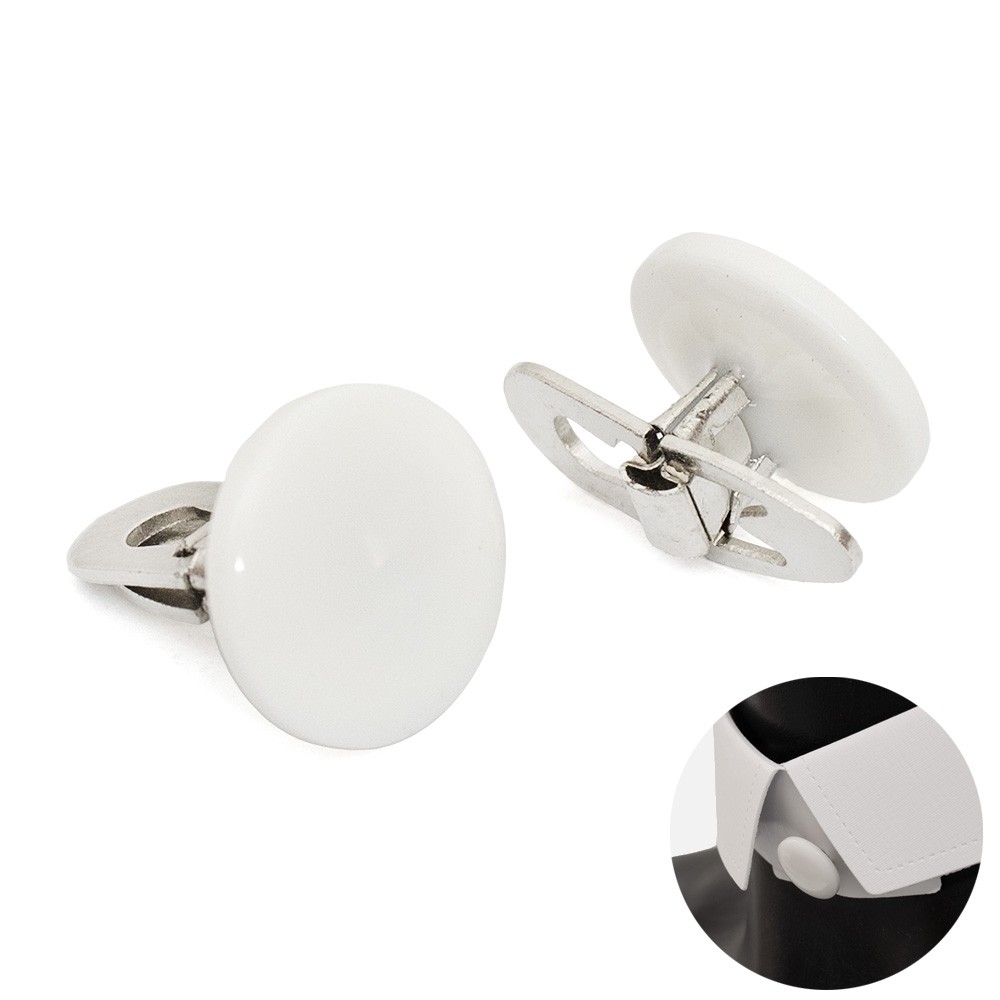 Bottone per colletto talare bianco in plastica con chiusura a farfalla.