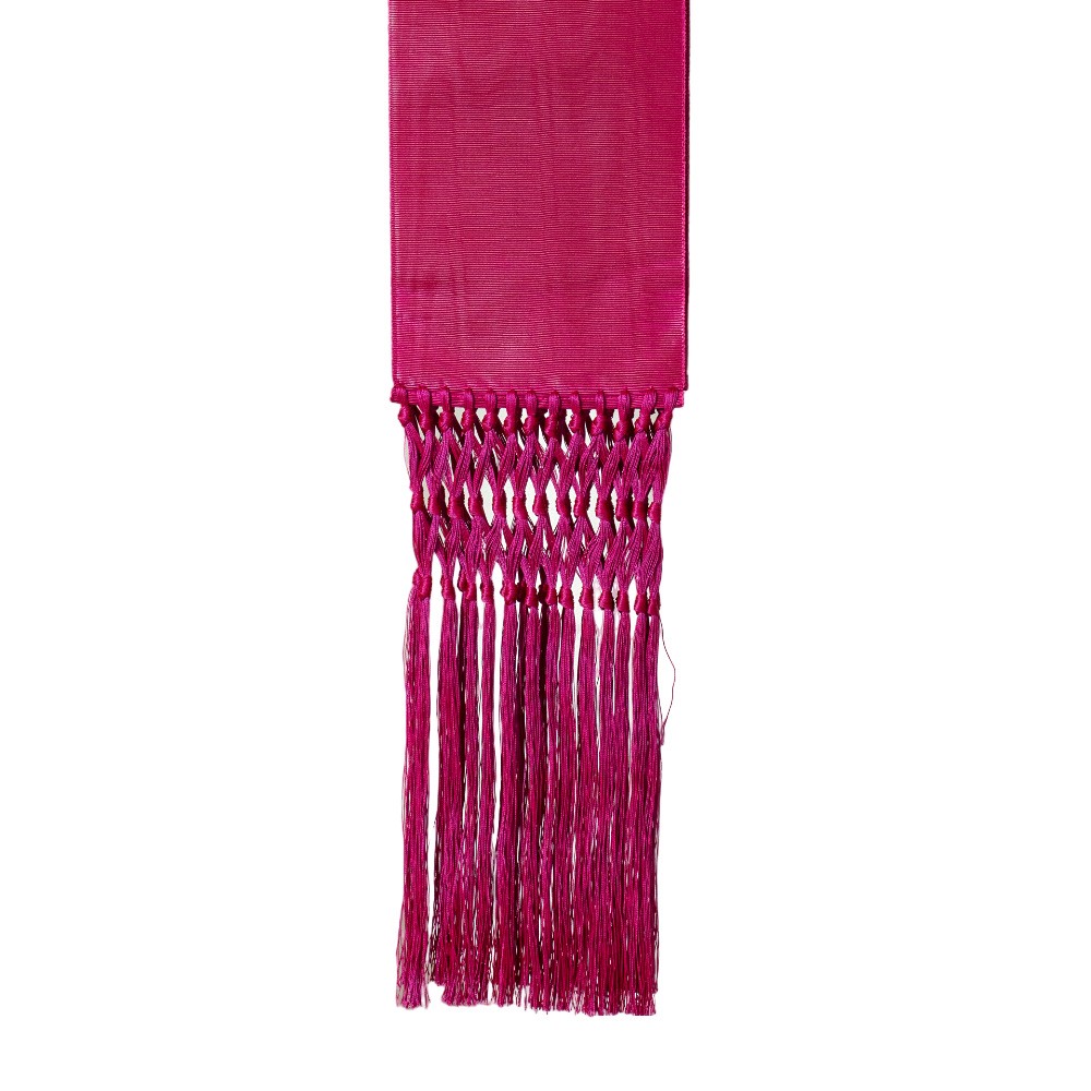 Fascia per talare confezionata in pregiato e elegante tessuto misto seta color paonazzo marezzata, completa di frangia.