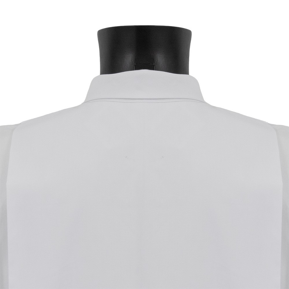 Confezionato in poliestere con tramezzi sulle maniche e in fondo al camice.