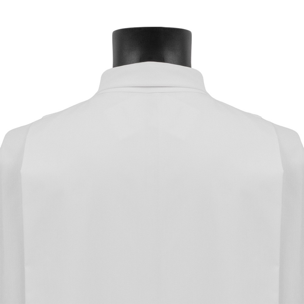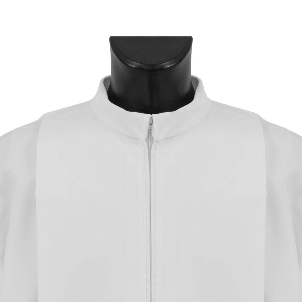 Camice bianco con zip in poliestere leggero.