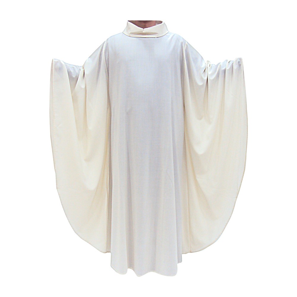 Classico camice casula avorio, con largo collo rivoltato, senza aperture. Pratico e comodo.