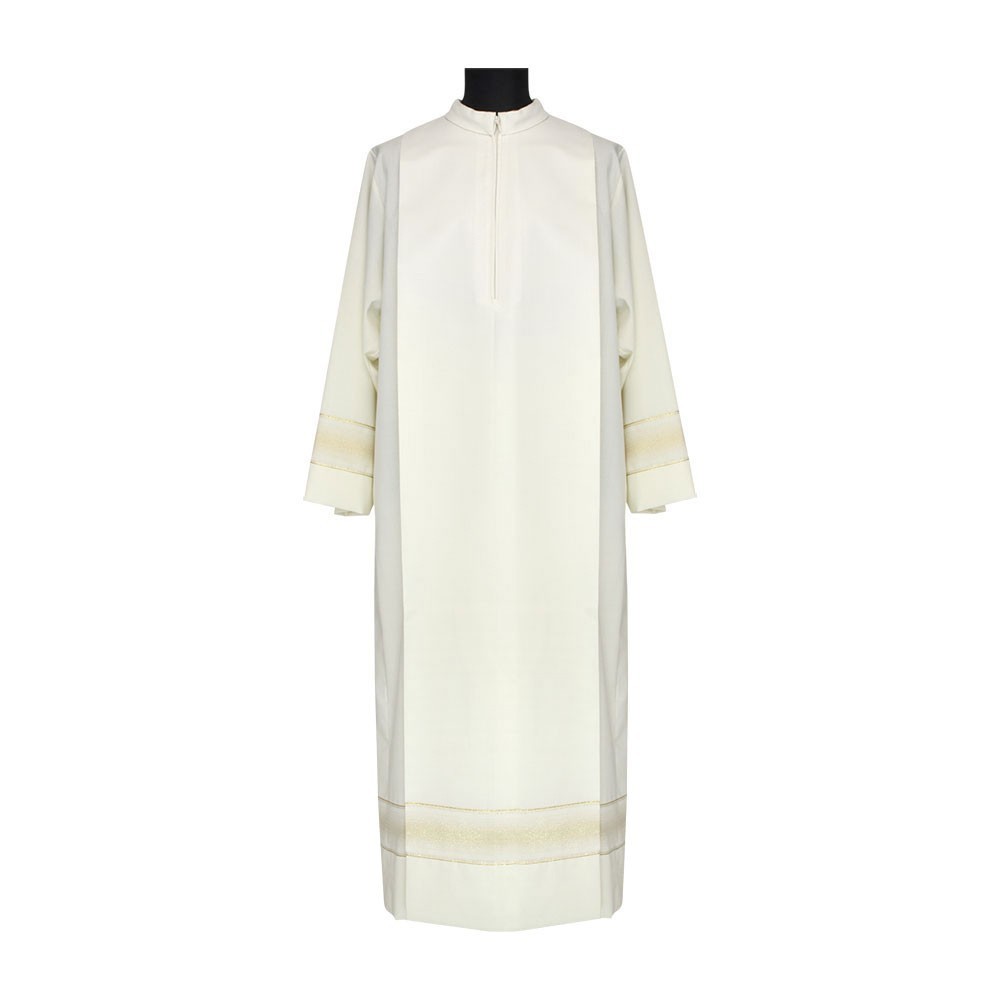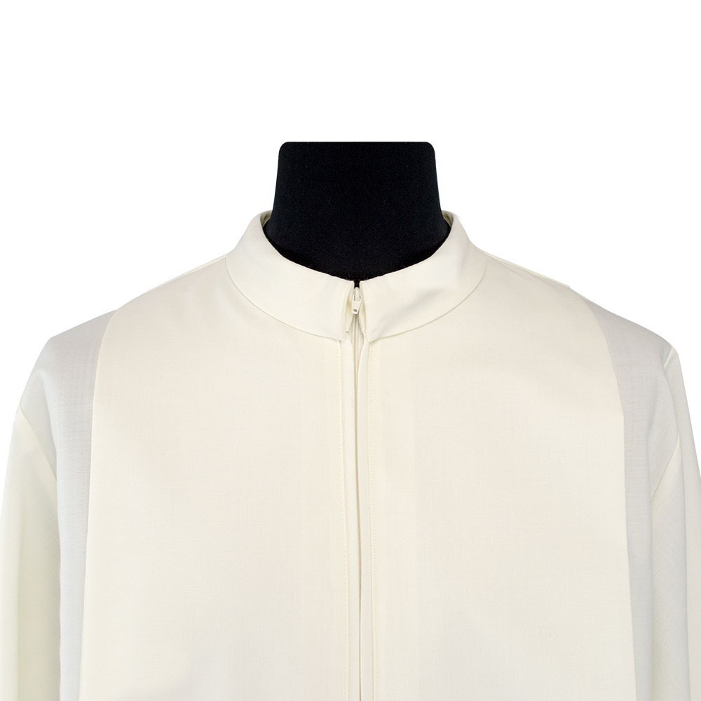 Consegna in 2 settimaneCamice avorio per sacerdote con tramezzo, zip e piegoni.