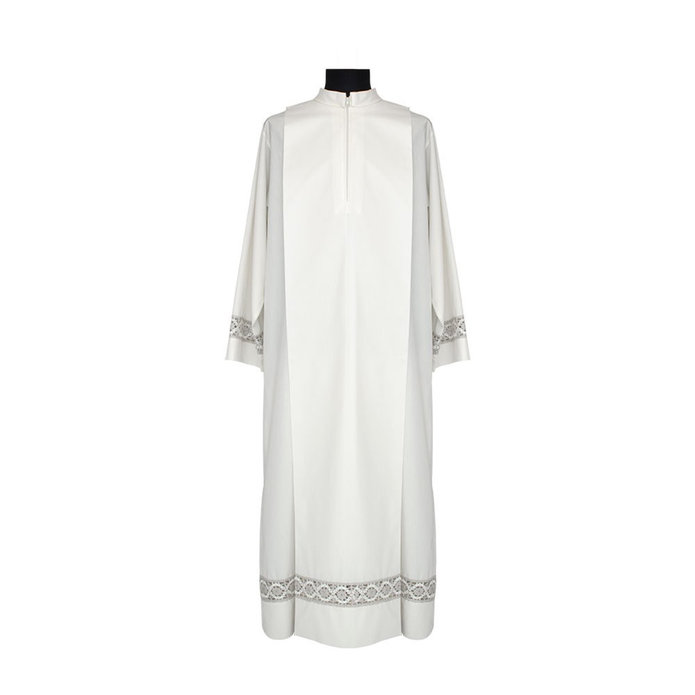Abbigliamento per sacerdote: Camice ricamato, con zip e due pieghe.