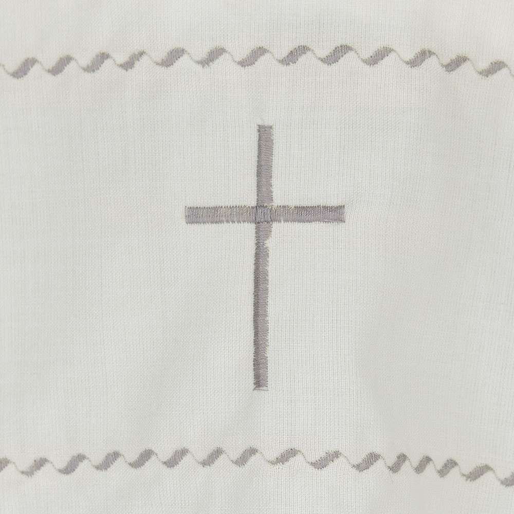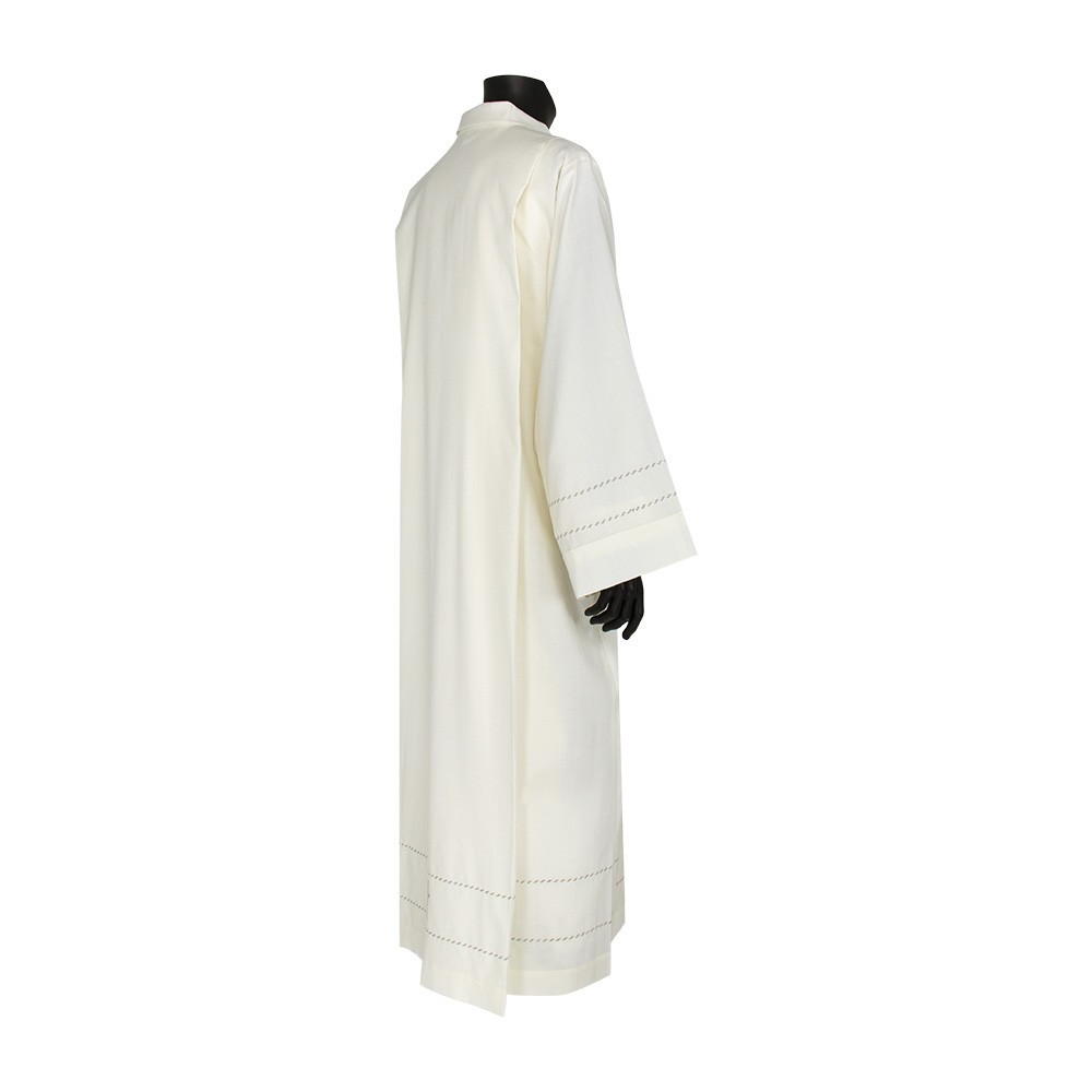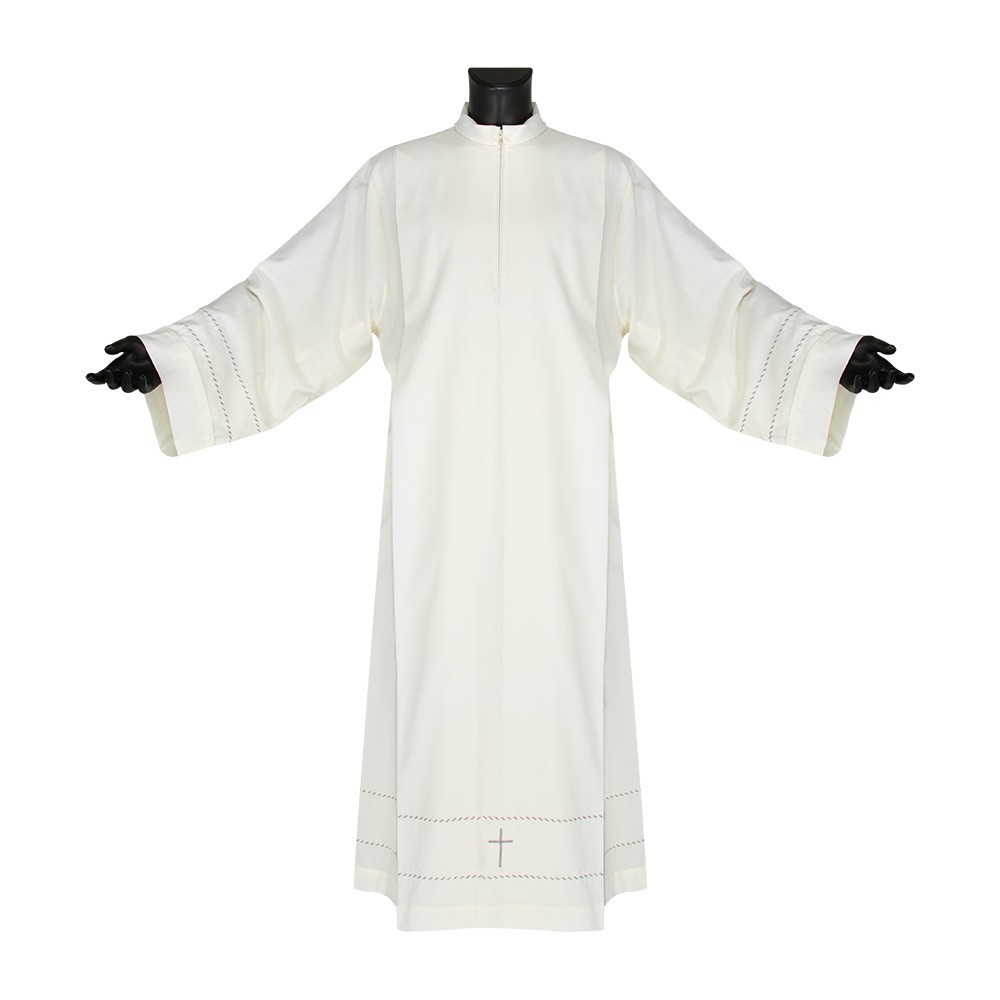 Camice Sacerdotale color avorio realizzato in misto lana, con ondine e croce ricamate a macchina attorno alle maniche ed intorno a tutta la parte bassa.