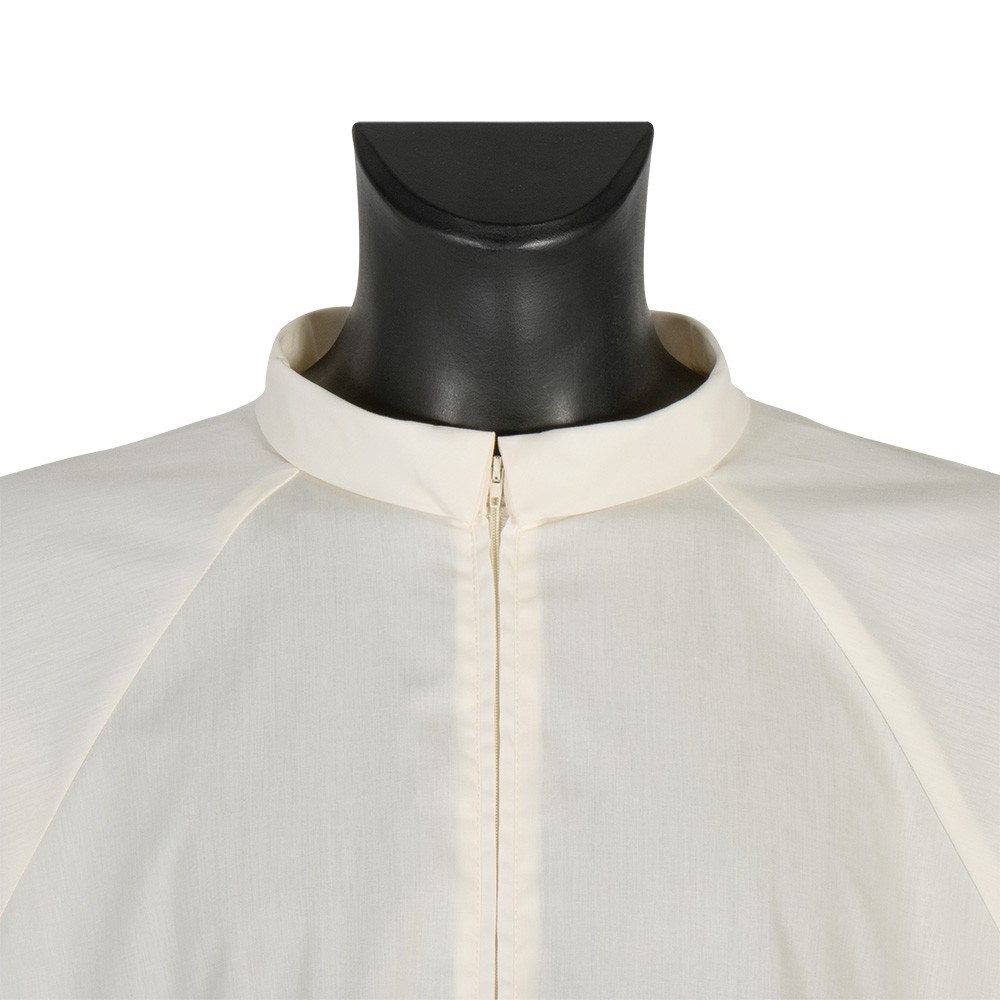 Camice per sacerdote color avorio "Mod Andrea" con colletto risvoltato e maniche larghe. Realizzato in tessuto cotone terital, fresco e leggero e zip sul davanti. Prodotto 100% made in Italy.