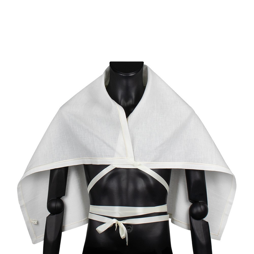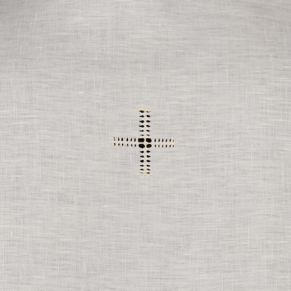 Amitto con ricamo Croce a punto quadro, color avorio in tessuto puro lino. Il fine e grazioso ricamo è eseguito interamente a mano. Realizzato e prodotto da un'azienda italiana. Produzione artigianale.
