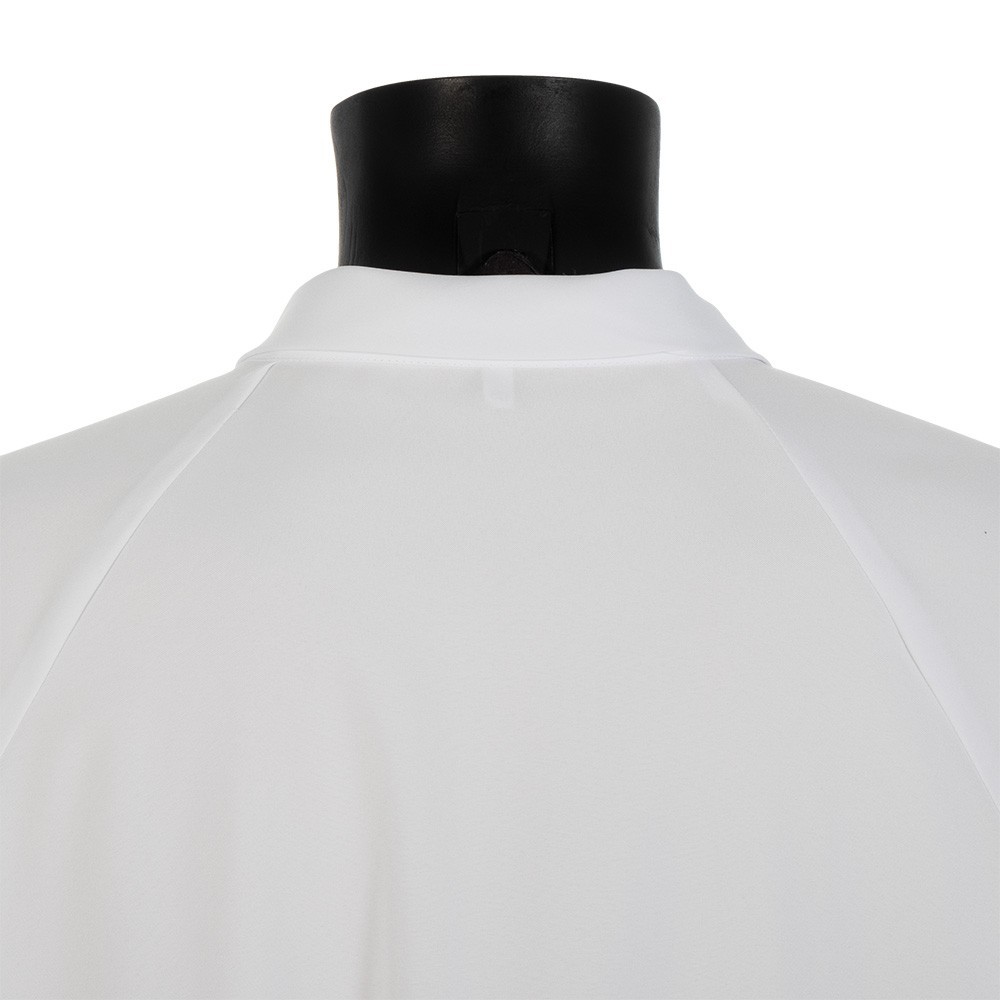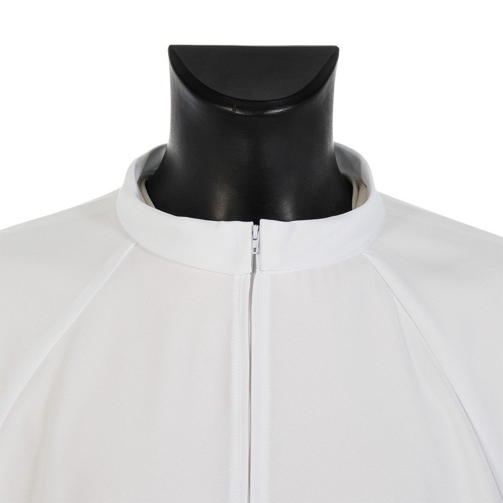Camice bianco con zip in poliestere leggero.