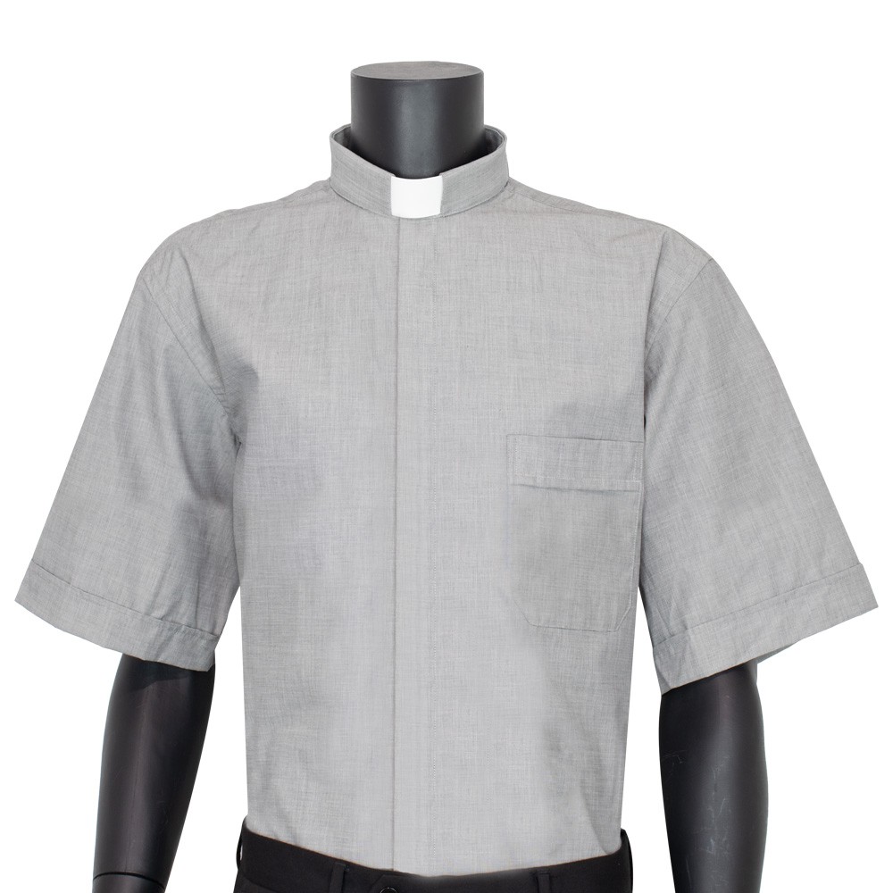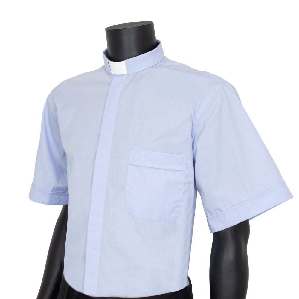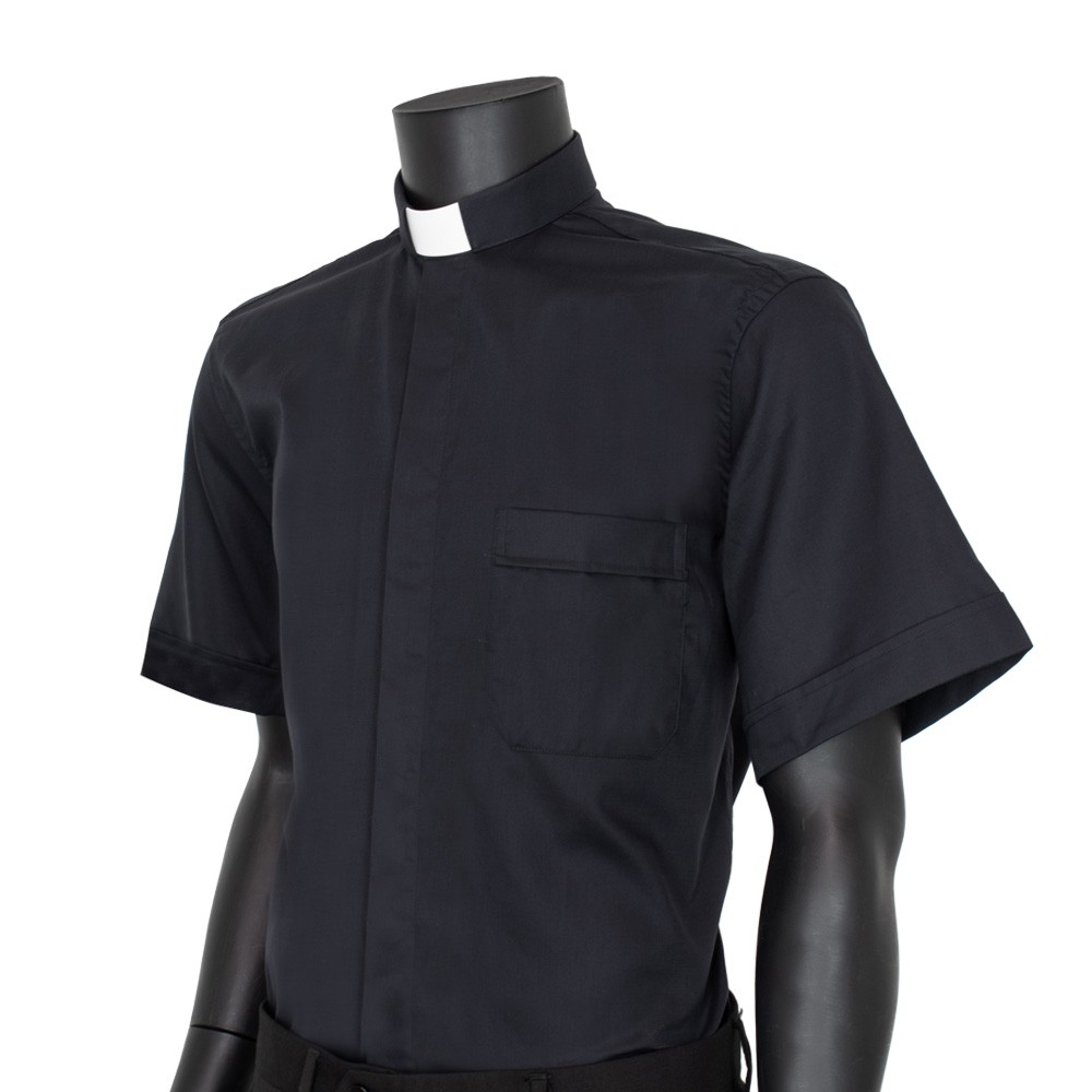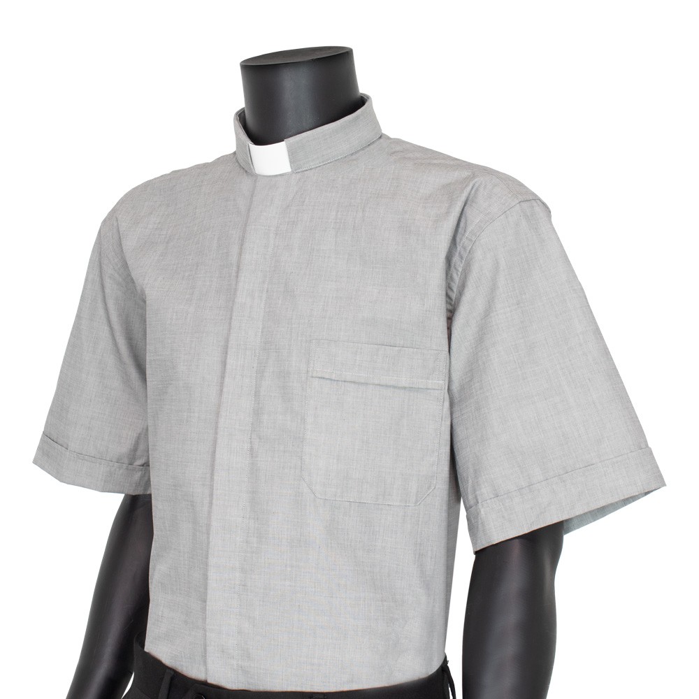 Camicia collo clergy manica corta in tessuto 100% cotone.