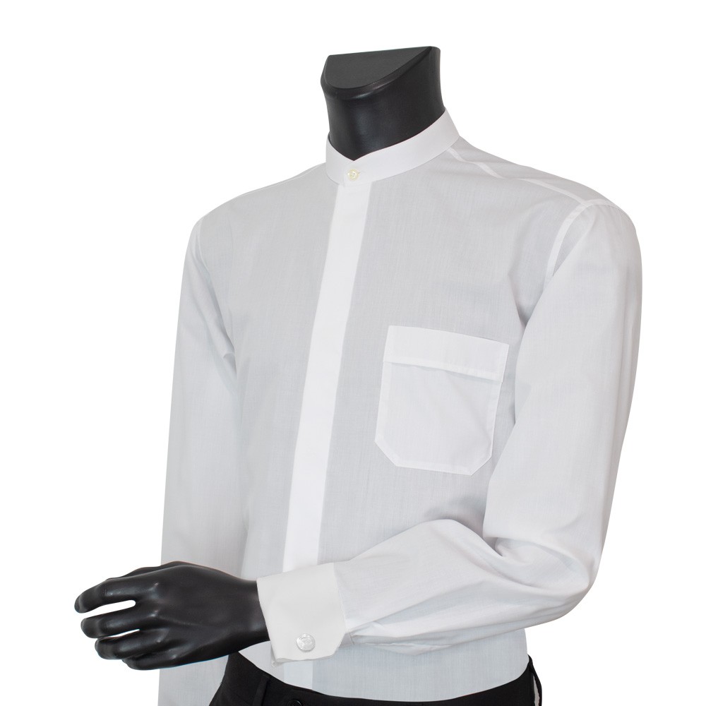 Camicia collo clergy in tessuto spigato 100% cotone.