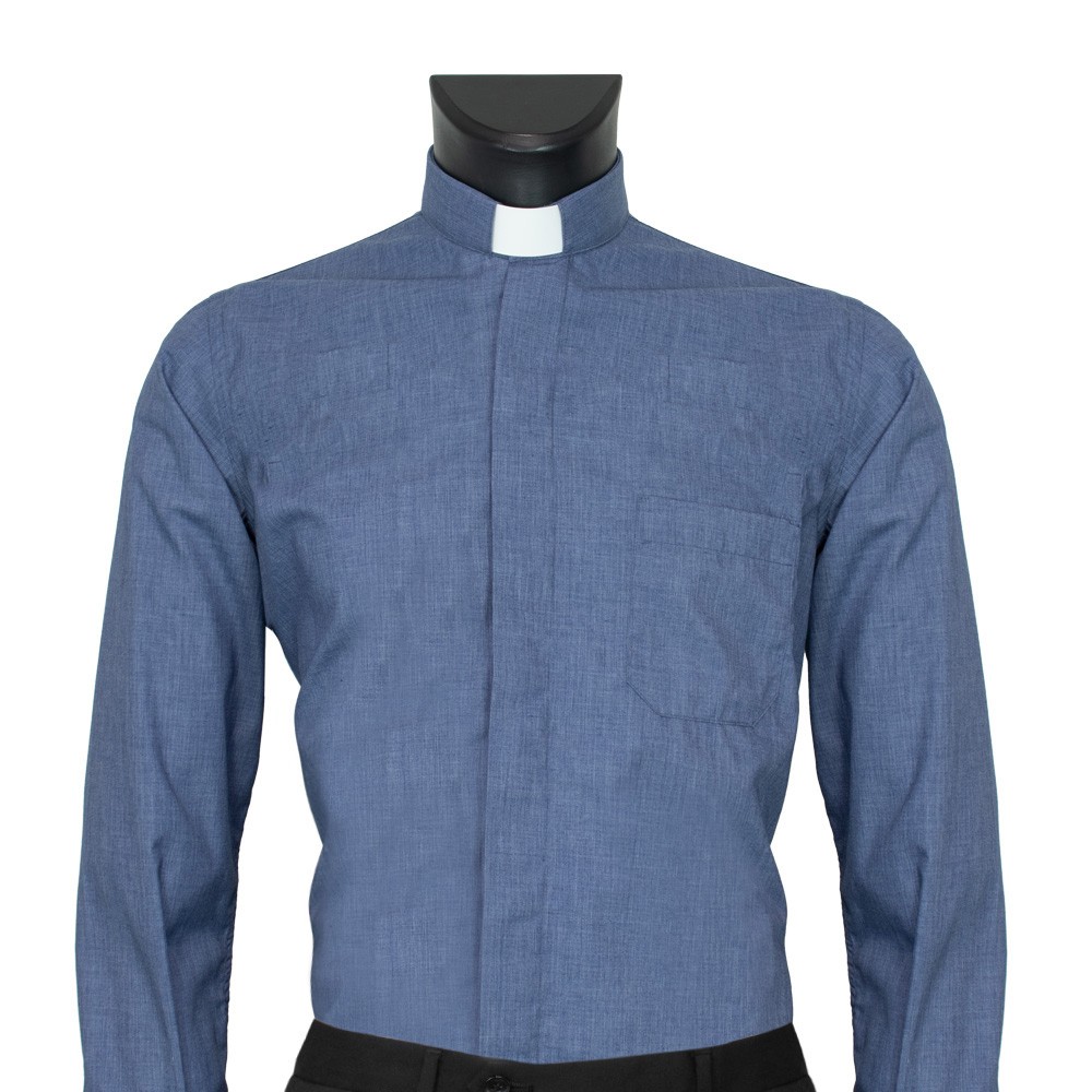 Camicie per preti e diaconi collo clergy tinta unita jeansato.