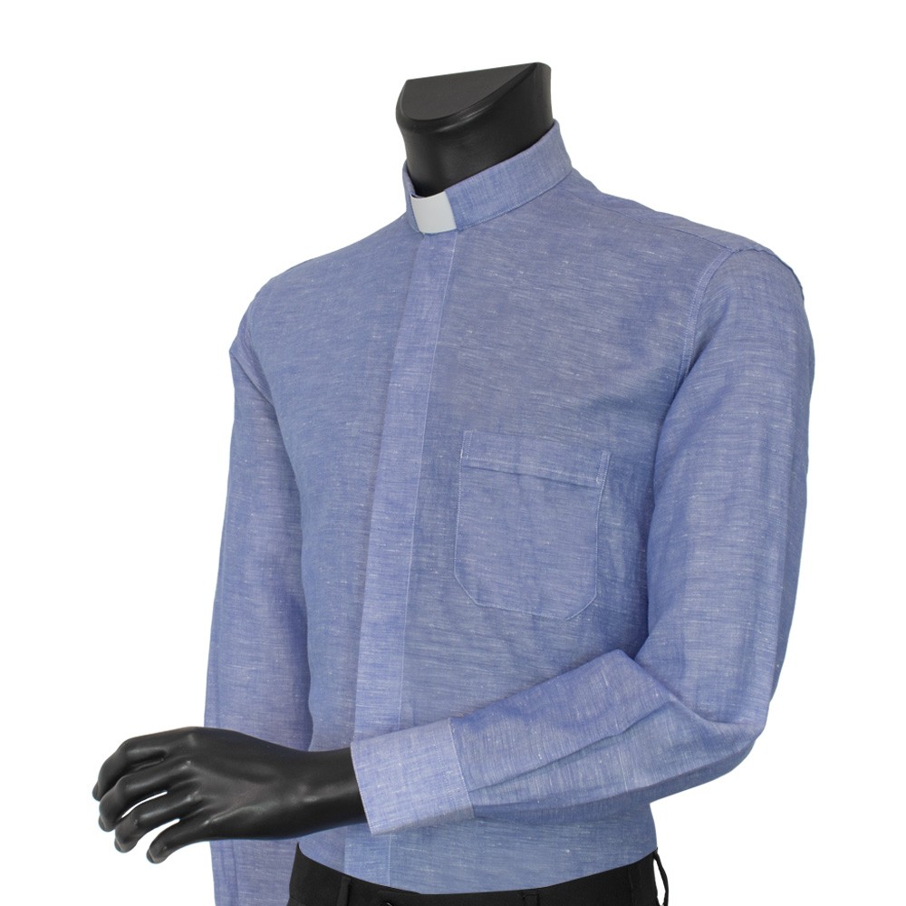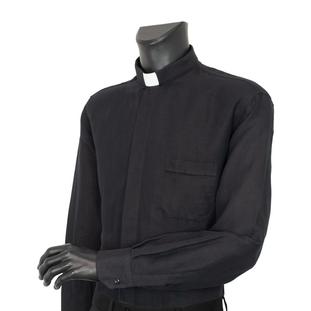 Camicie per sacerdoti e diaconi collo romano in tessuto misto cotone, disponibile sia nera che blu.