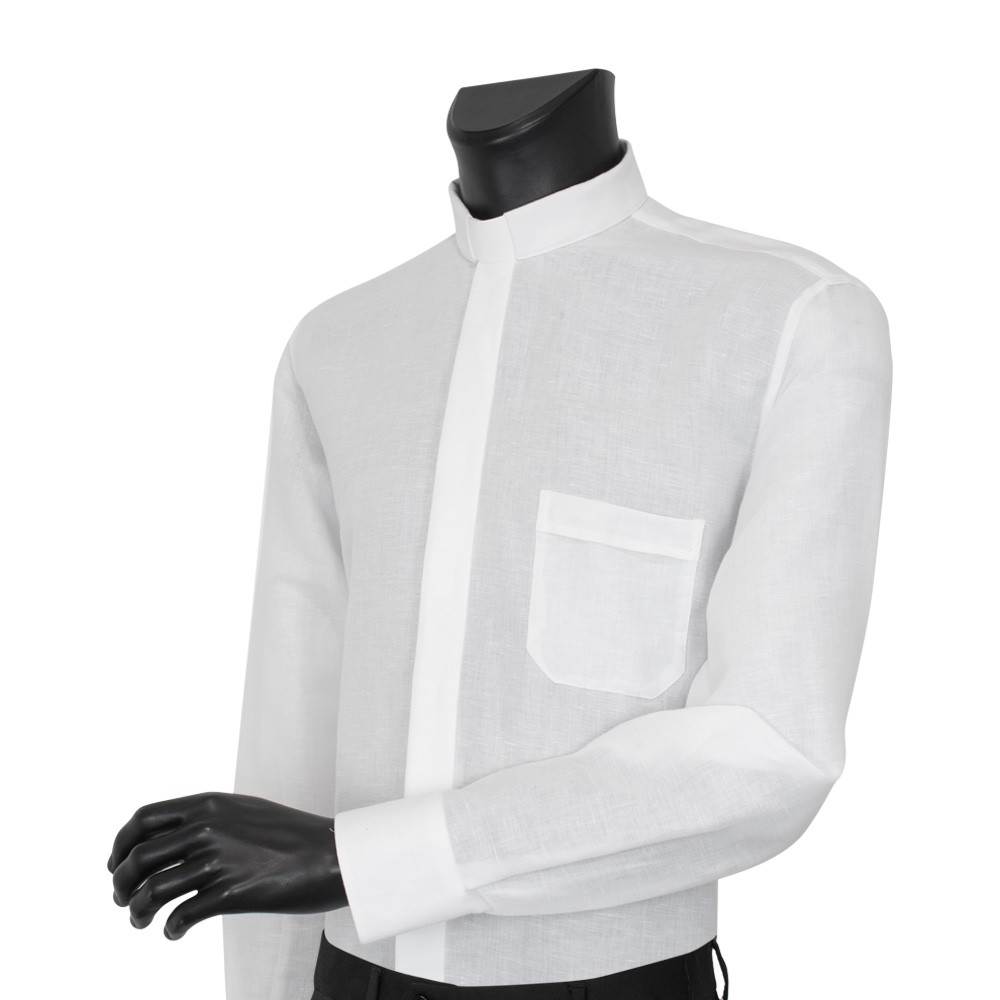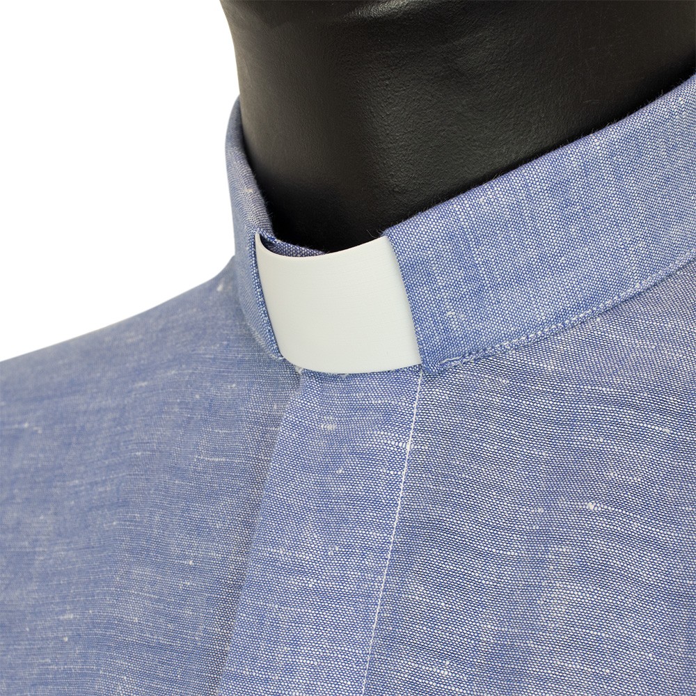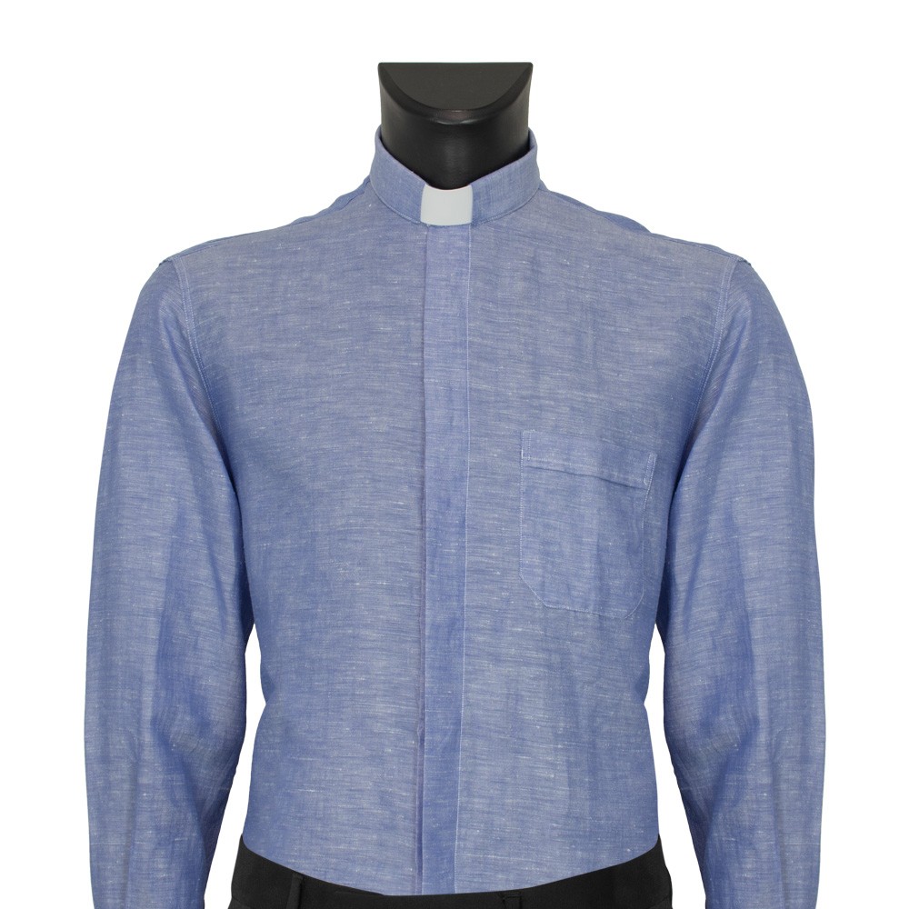Camicia collo clergy in tessuto spigato 100% cotone.