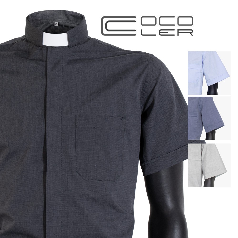 Camicia clergyman in misto cotone, tinta unita mezza manica.