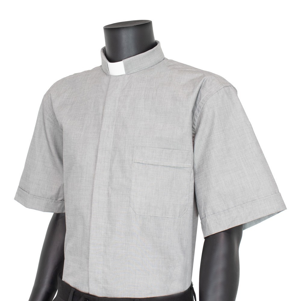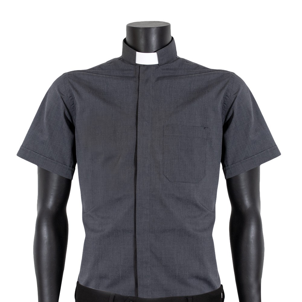 Camicia sacerdotale collo clergy in misto cotone fil a fil mezza manica.