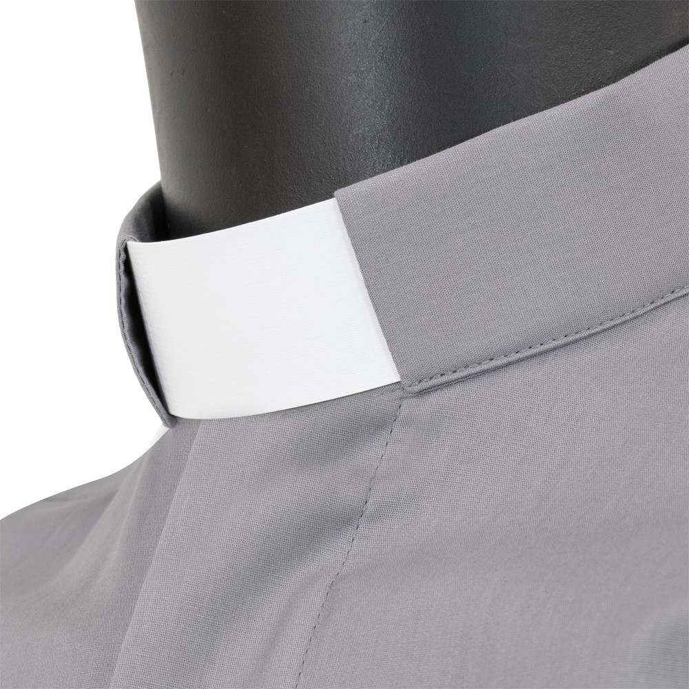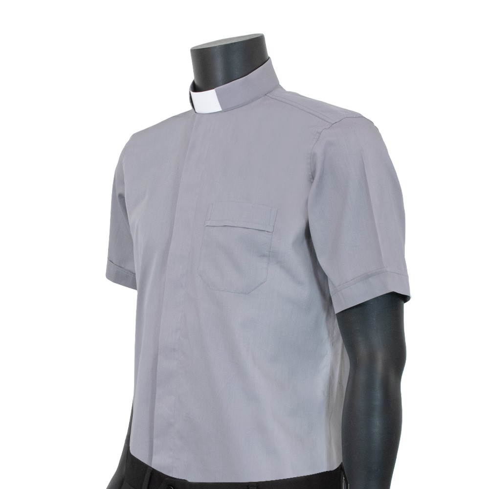 Camicia per sacerdote color grigio medio a marchio Myriam Arte Sacra, con collo clergy in 100% cotone.