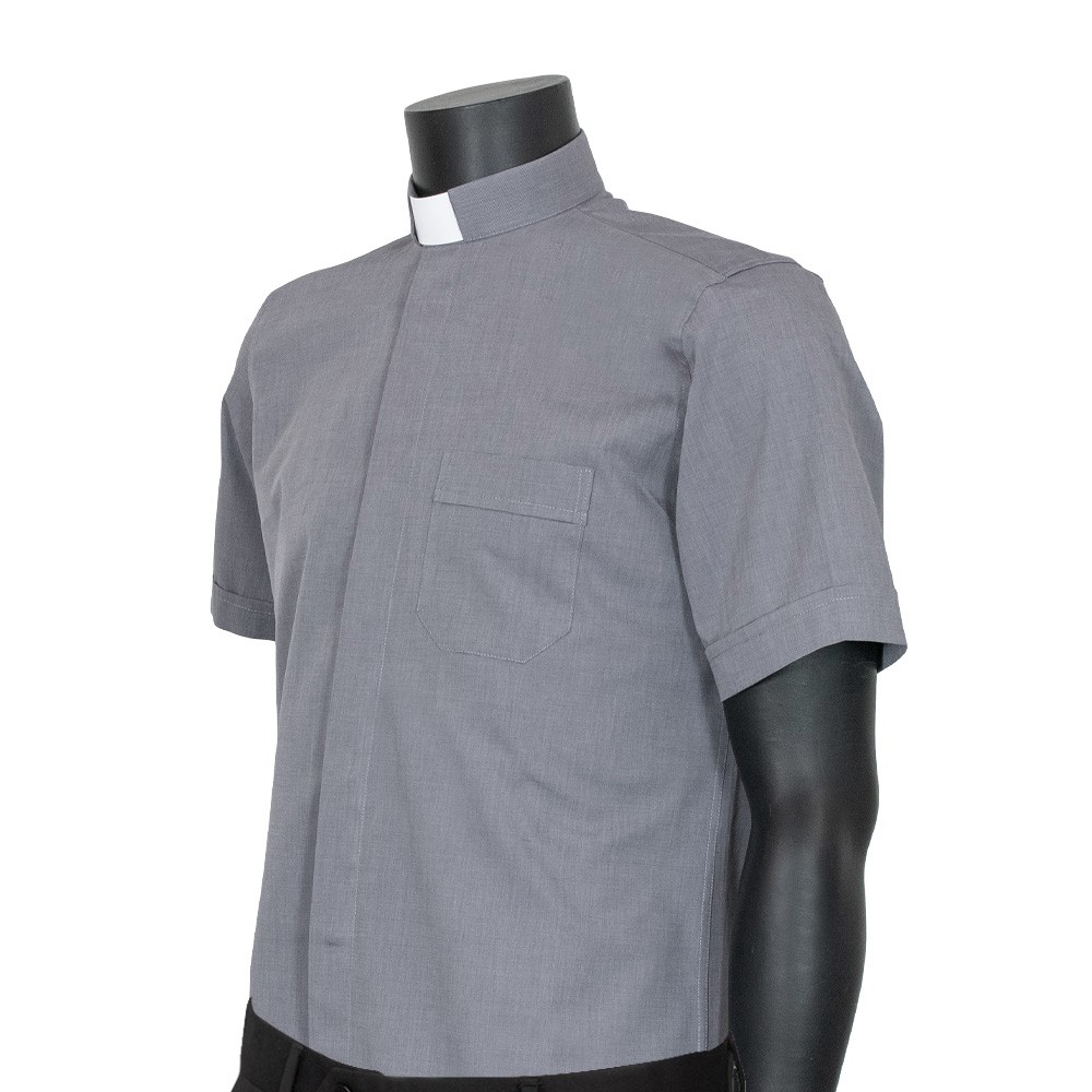 Camicia clergyman a manica corta con lavorazione fil a fil.