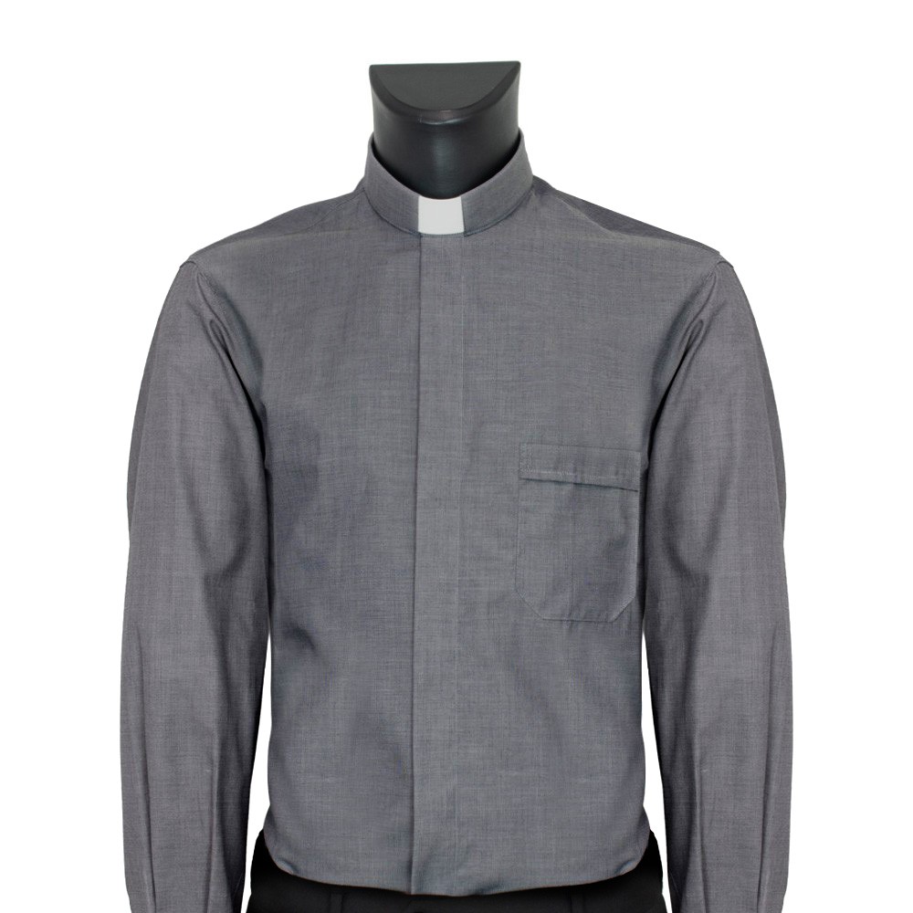 Camicia GRIGIO MEDIO con colletto clergy, disponibile dalla taglia 37 fino alla taglia 50.