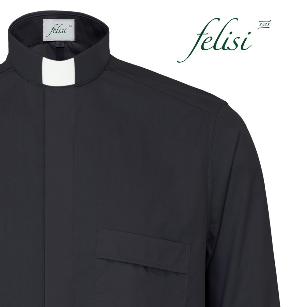 Camicia clergy nera a manica lunga easy stretch in misto cotone.