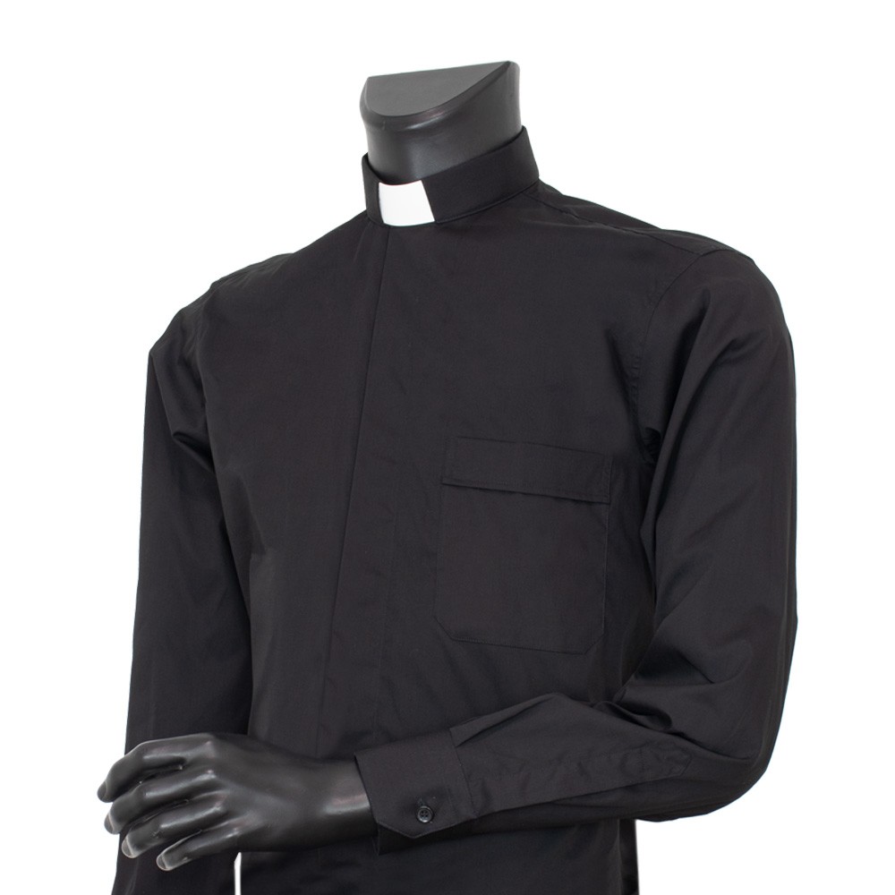 Camicia clergy a manica lunga in 100% cotone popeline. Il popeline è tessuto traspirante, leggero e resistente, ottima vestibilità, ottime rifiniture, adatto per essere utilizzato in ogni periodo dell'anno.