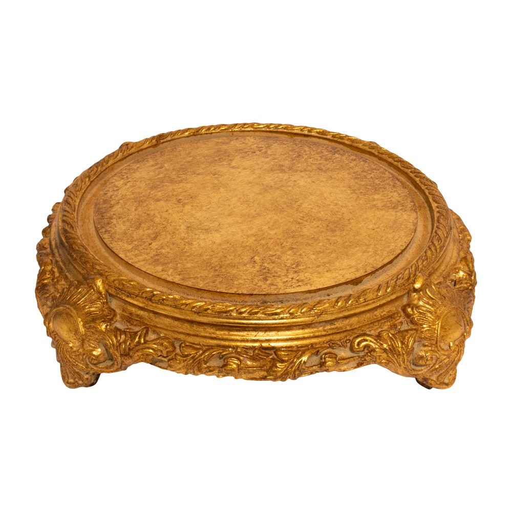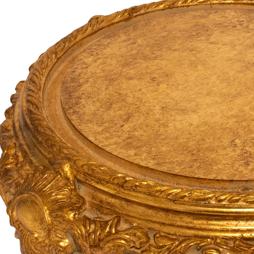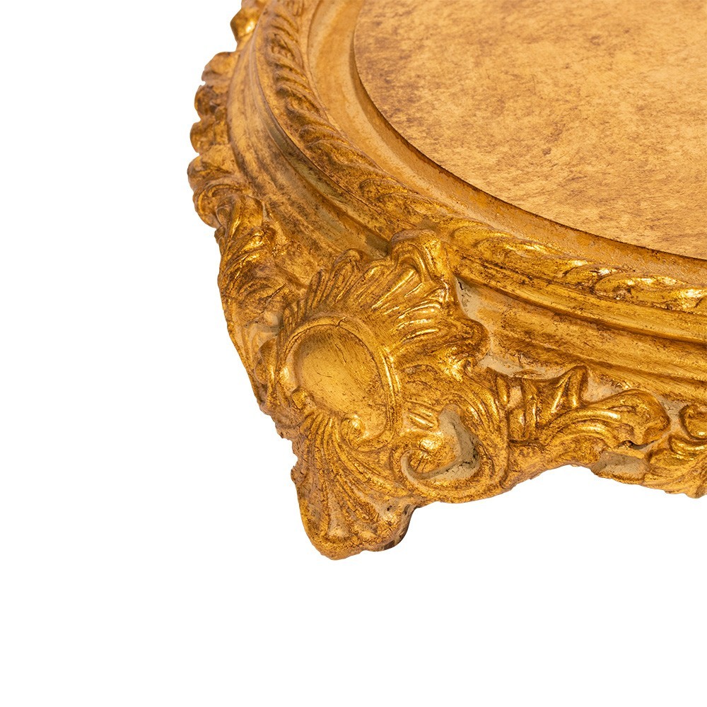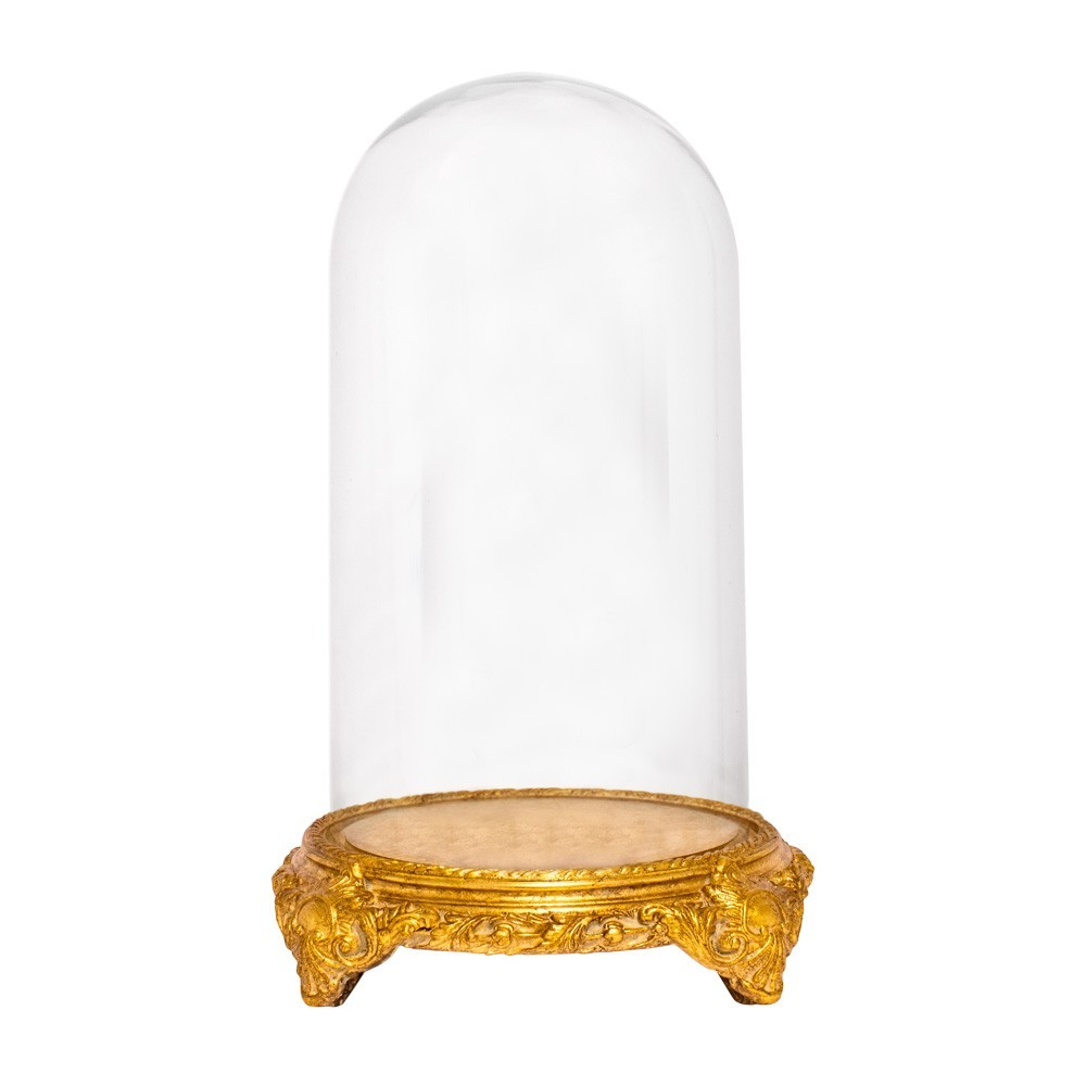 Campana in vetro completa di base in stile barocco rivestita con foglia oro.
