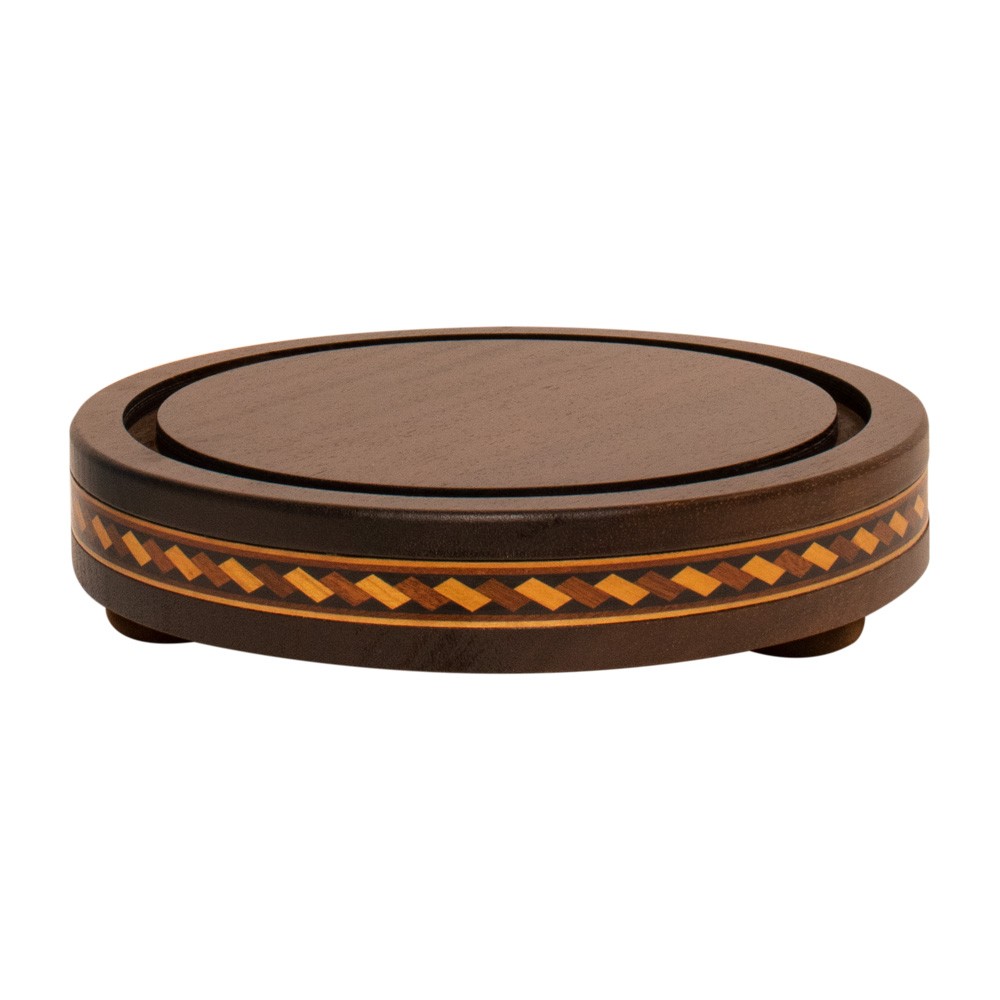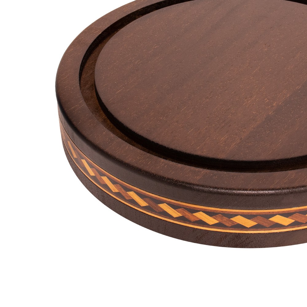 La base è in legno finemente intarsiata con spessore di 5,5 cm.