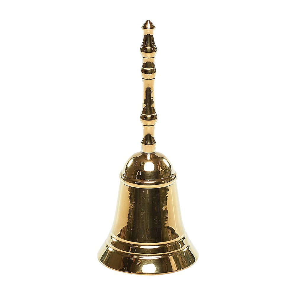 Campanello liturgico in ottone dorato lucido.