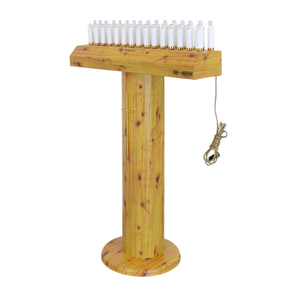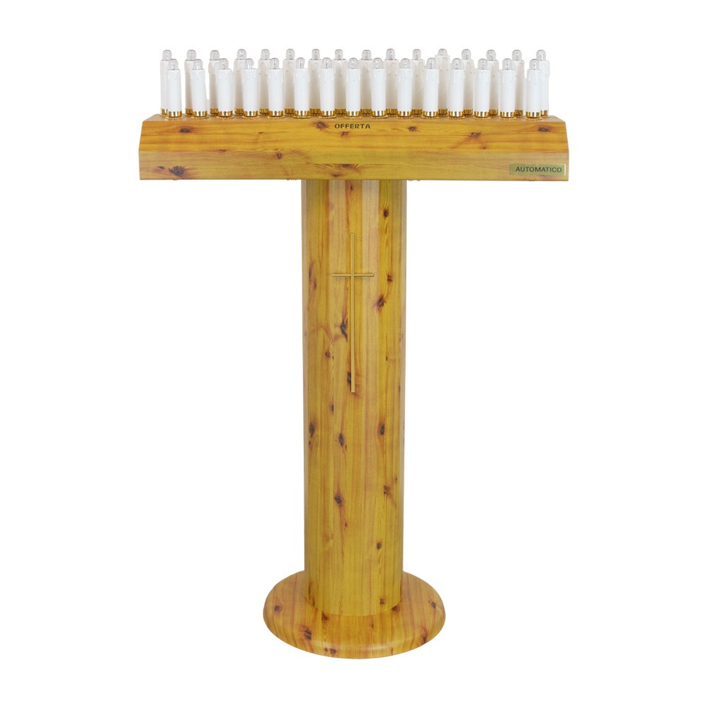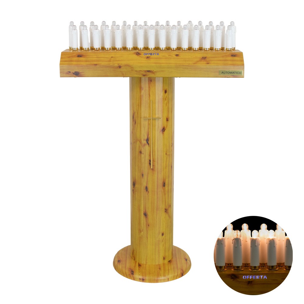 Modello a colonna in legno con 31 candele led da 12 volt.