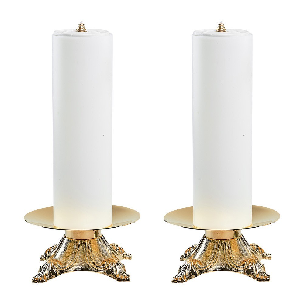 Candeliere moderno da chiesa, completo di due fiamme, h 16 cm.