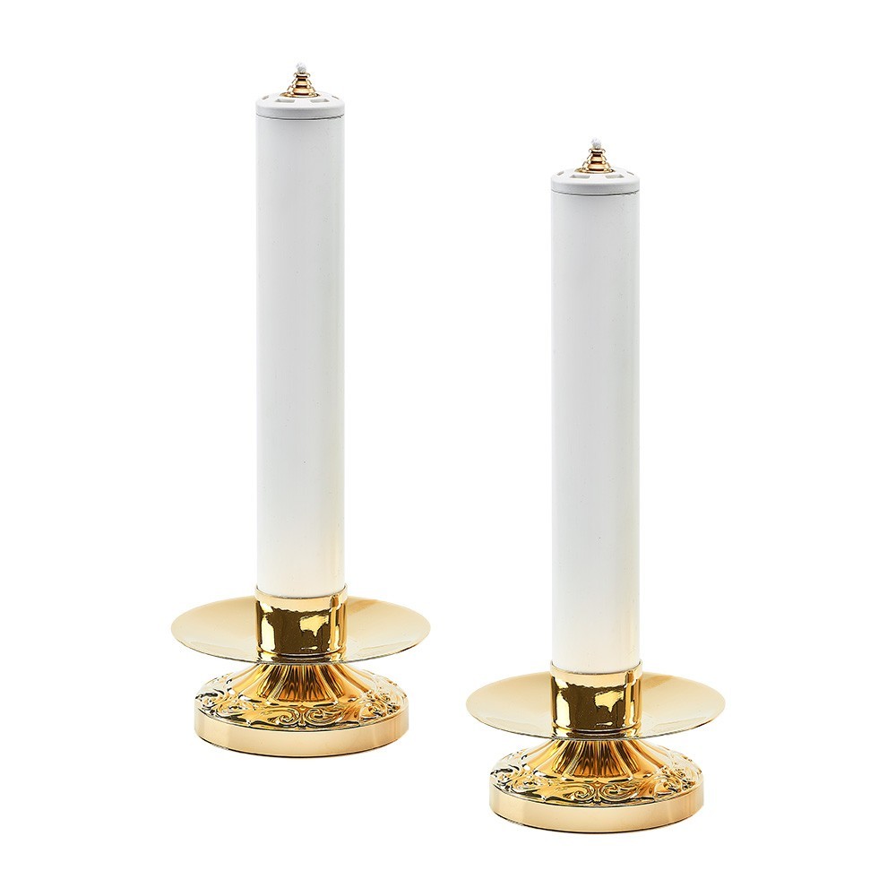 Candeliere moderno da chiesa, completo di due fiamme, h 16 cm.