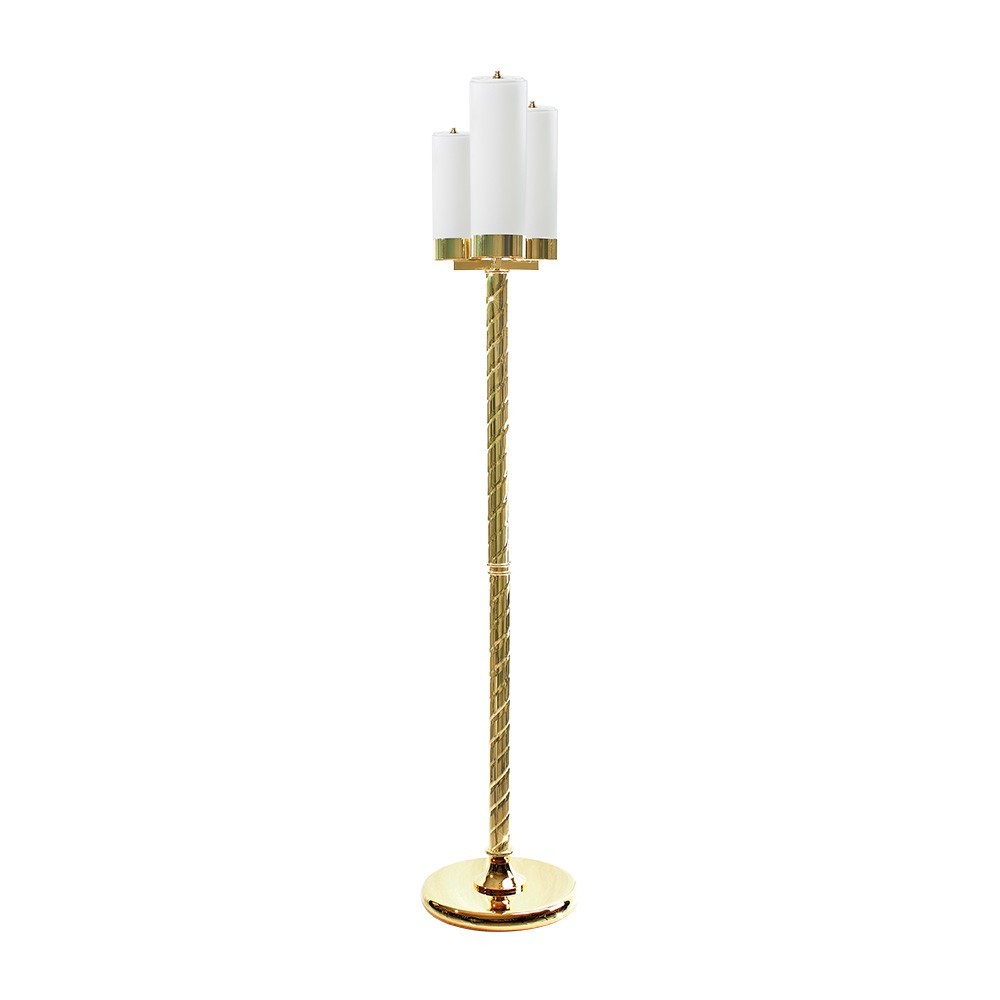 Candeliere a tre fiamme con base e completo di finte candele a scala e cartucce.