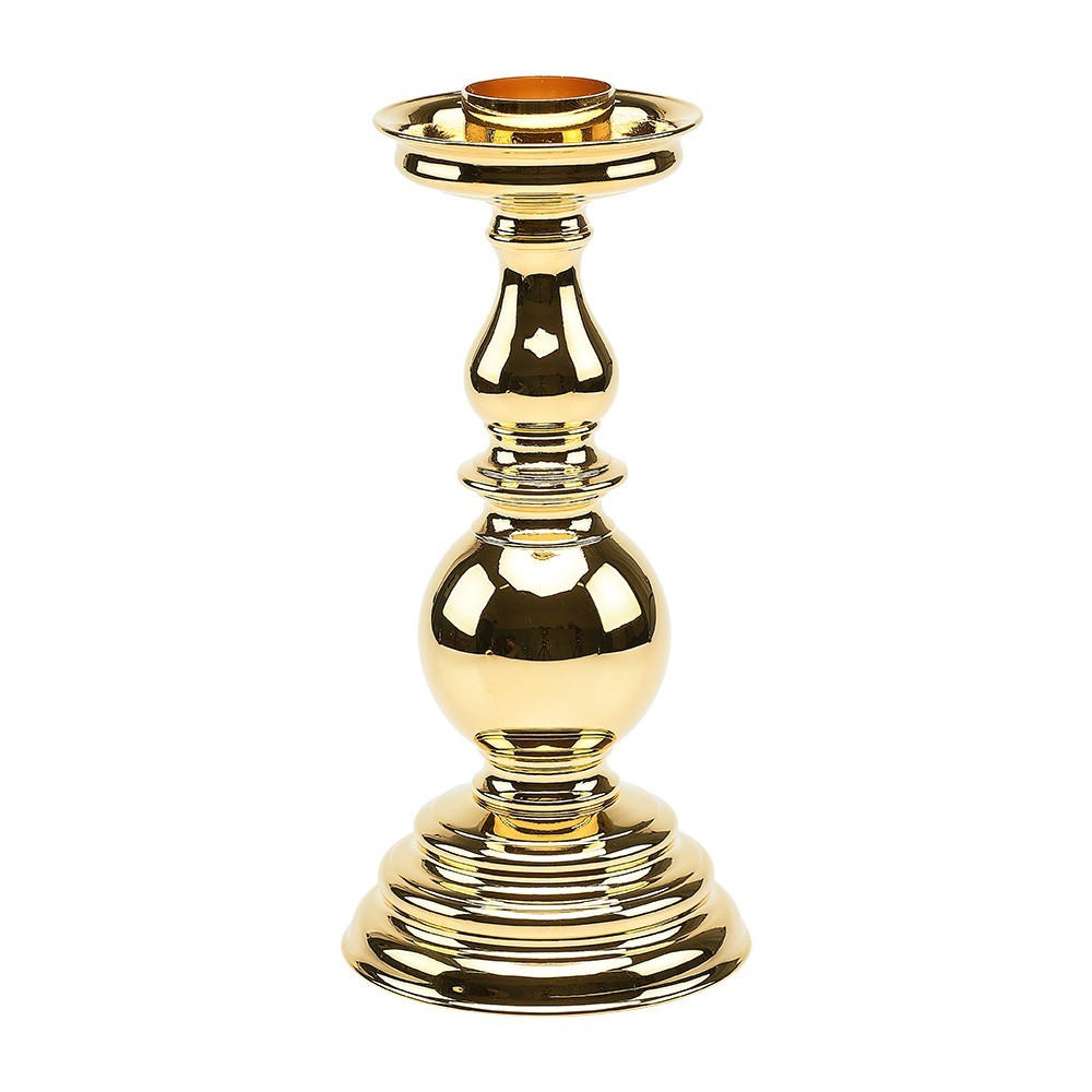 Candeliere modello "Boccia" in ottone dorato. Il candeliere è adatto per finte candele con diametro masssimo 4 cm.