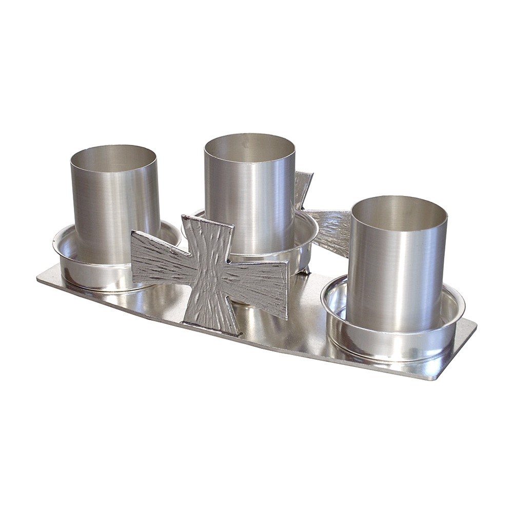 Questo candeliere dispone di 3 fiamme ed è interamente in ottone con finitura argento liscio. E' impreziosito con croci in fusione di ottone lavorate a rilievo. Prodotto esegutio interamente a mano da una ditta artigianale italiana, garantendo materiali e lavoraione di ottima scelta.