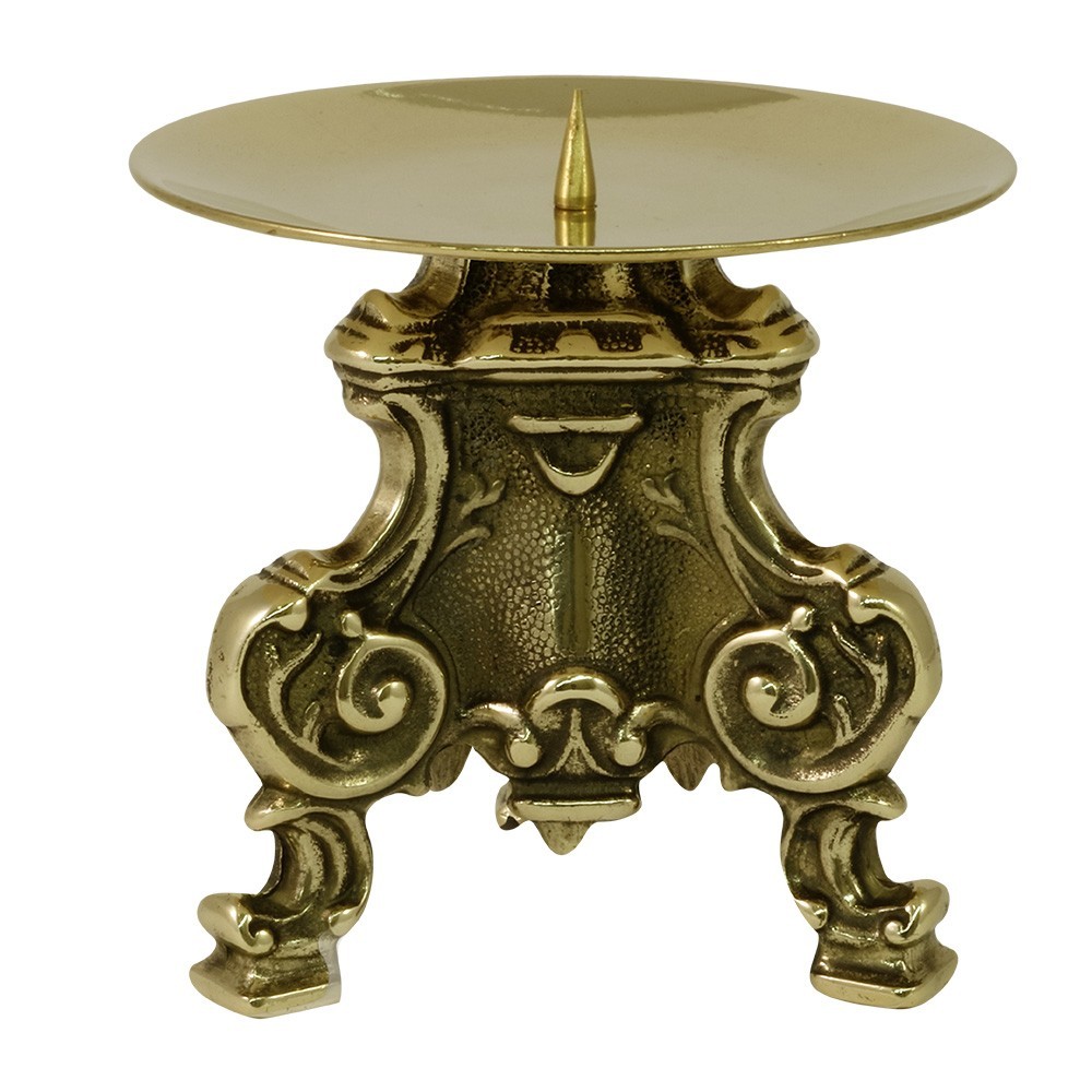 Candeliere da altare in ottone dorato.