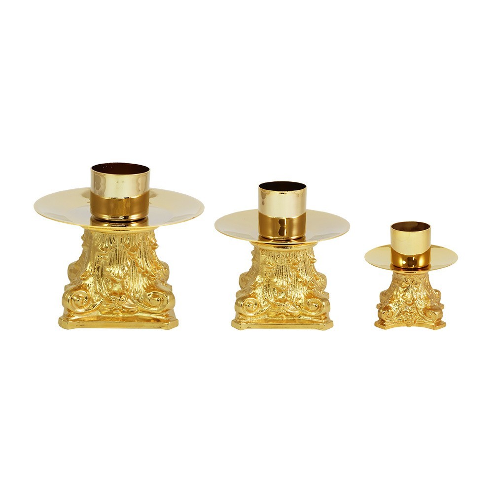 Consegna in 2 settimaneCandeliere basso da altare in ottone dorato 24k, h 6 cm.