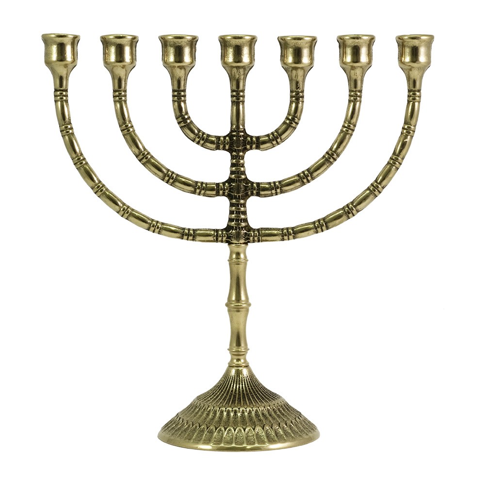 Candelabro per altare in ottone lucido. Il candeliere è alto 29 cm ed è completo di 7 fiamme.