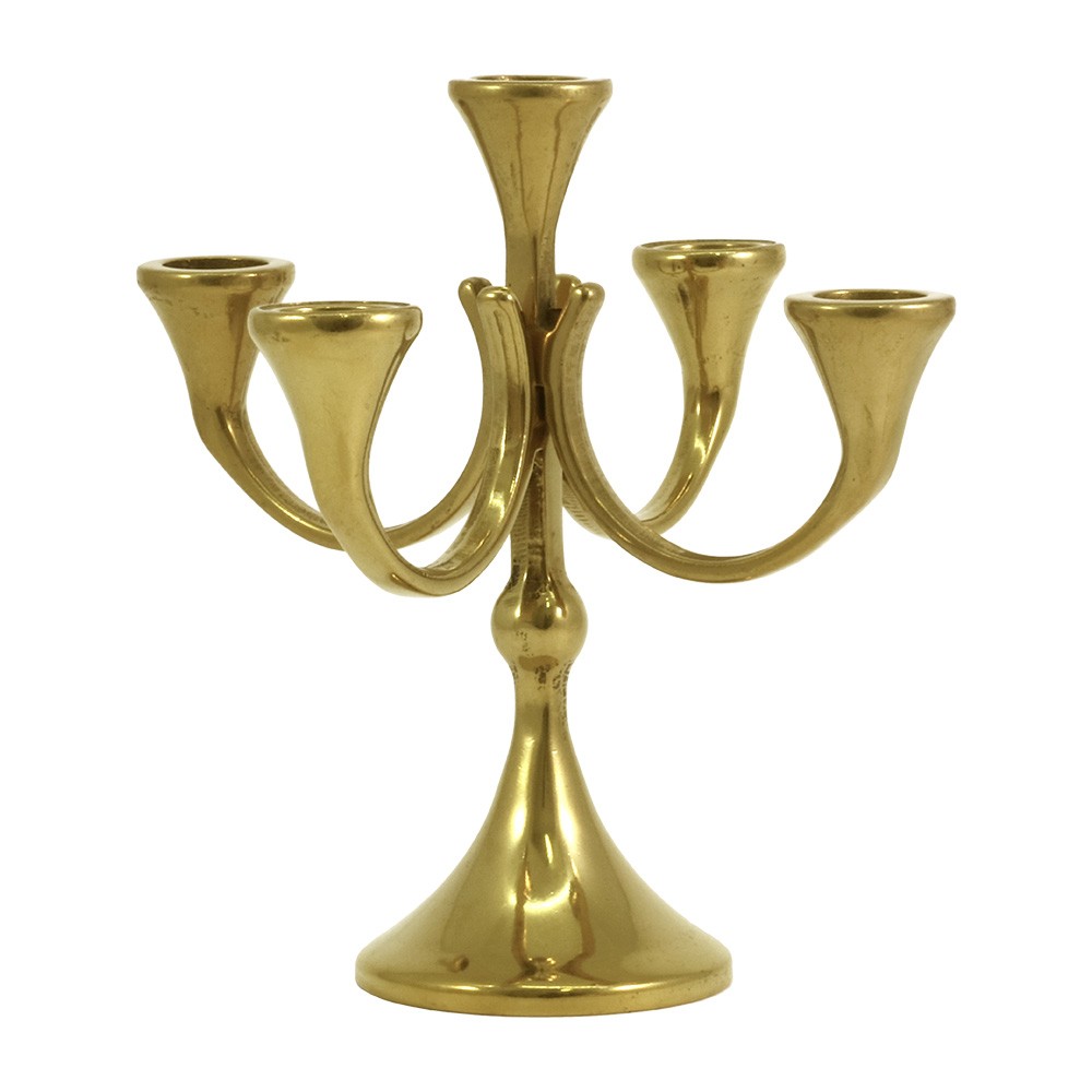 Candelabro per altare interamente in ottone dorato lucido completo di 5 braccia.
