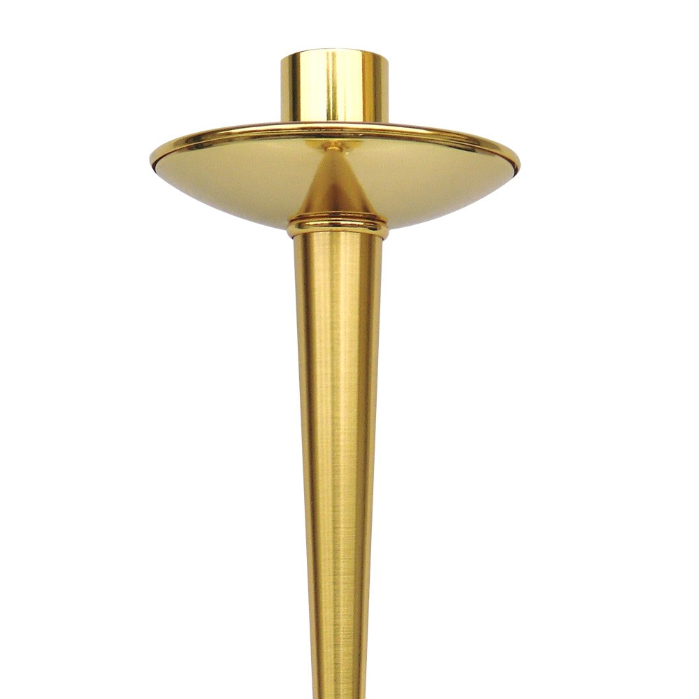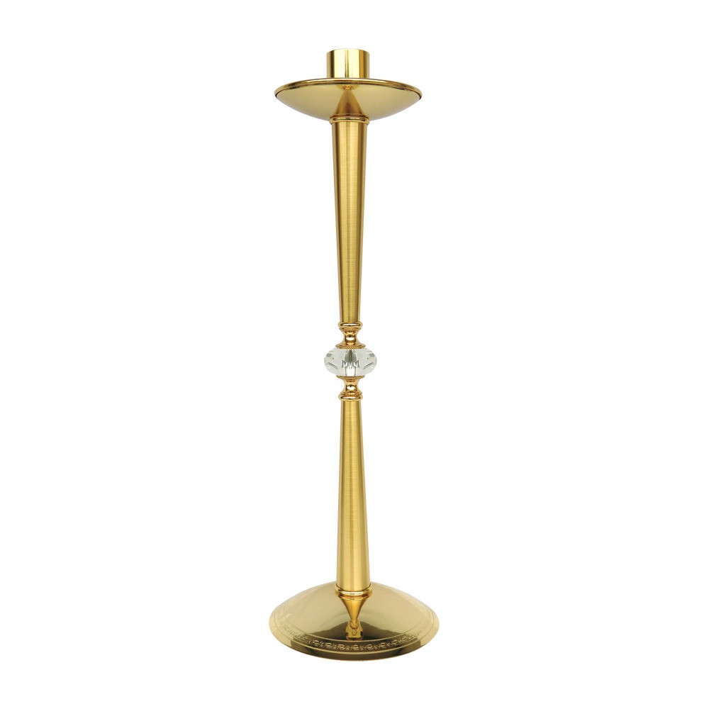 Candeliere processionale in ottone dorato con nodo in cristallo.
