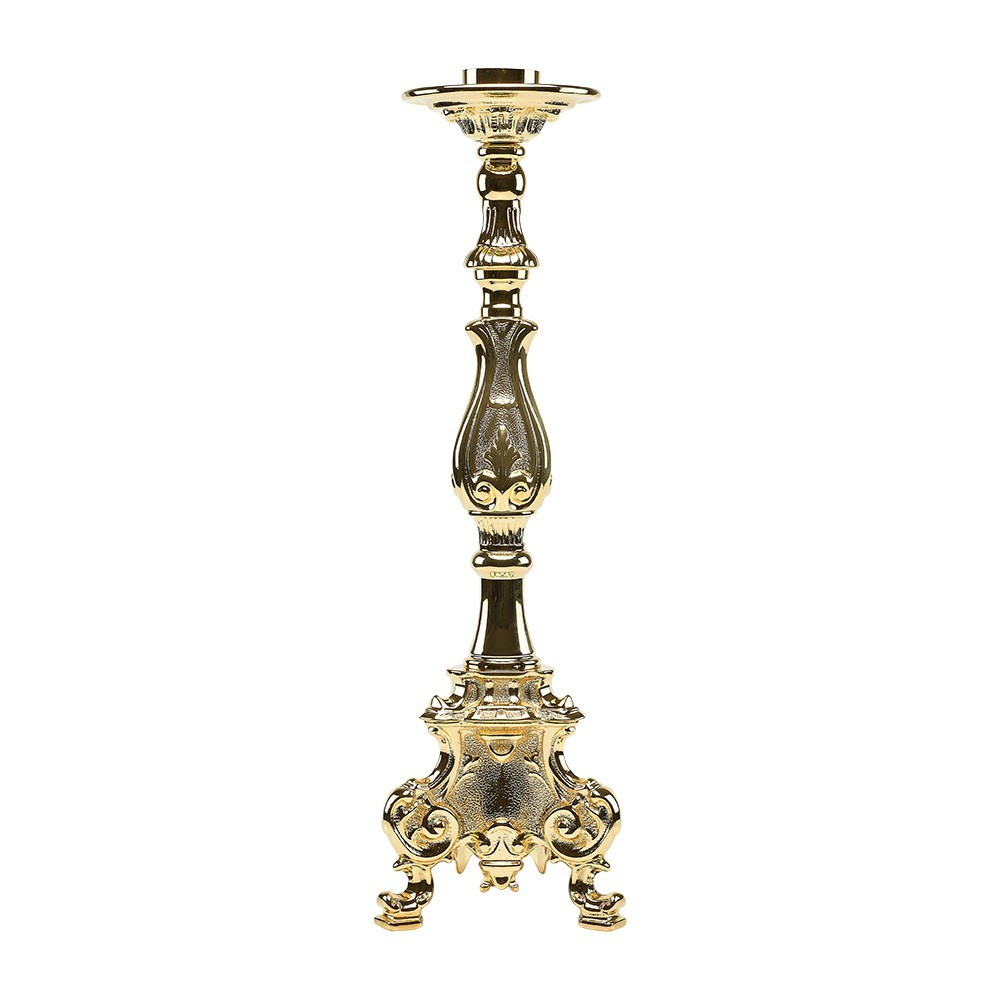 Candeliere in ottone dorato modello "Rococò" con bossolo per finta candela. Articolo di ottima qualità, eseguito interamente da un'azienda italiana.