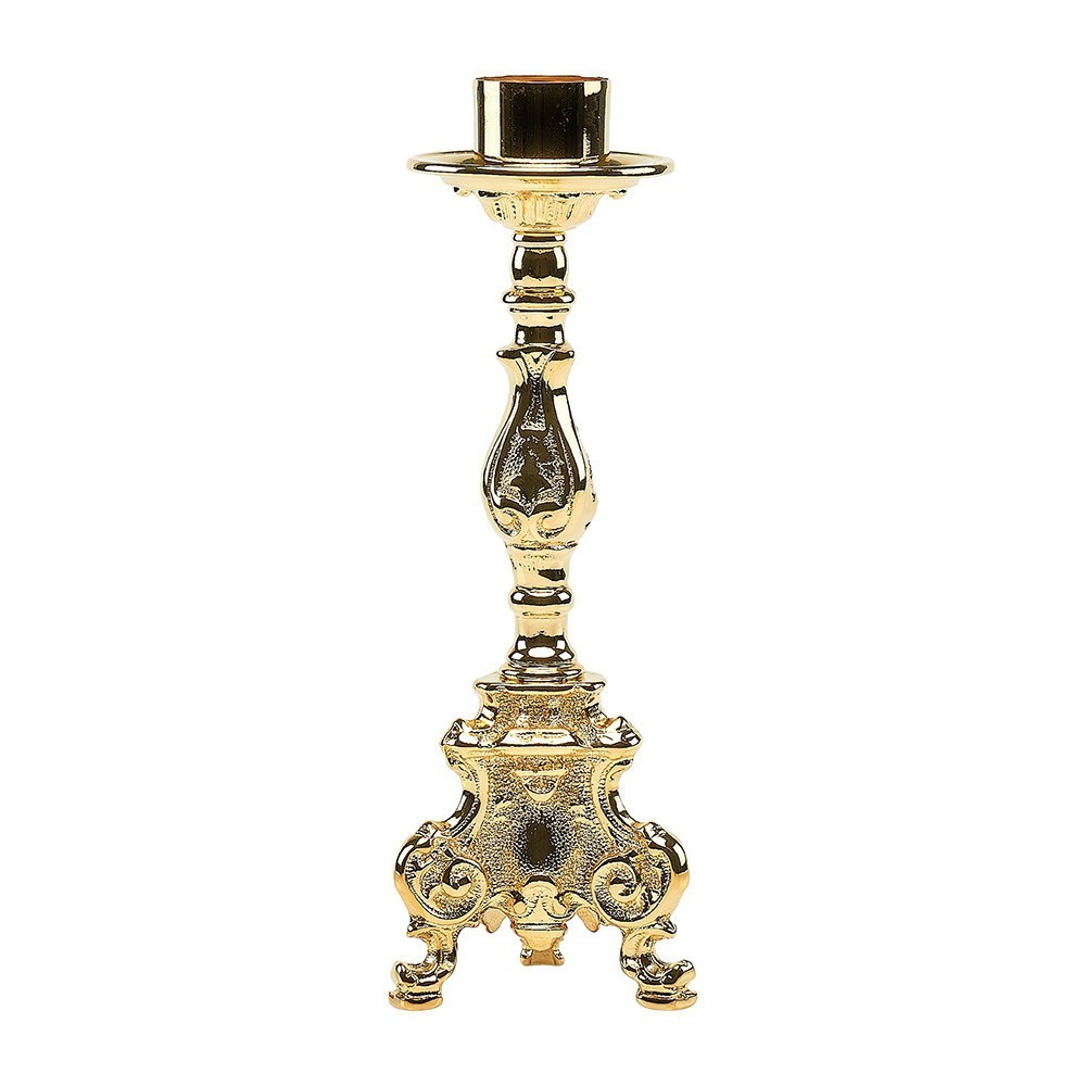 Candeliere in ottone finitura dorata modello "Rococò" con bossolo per finta candela da 4 cm.