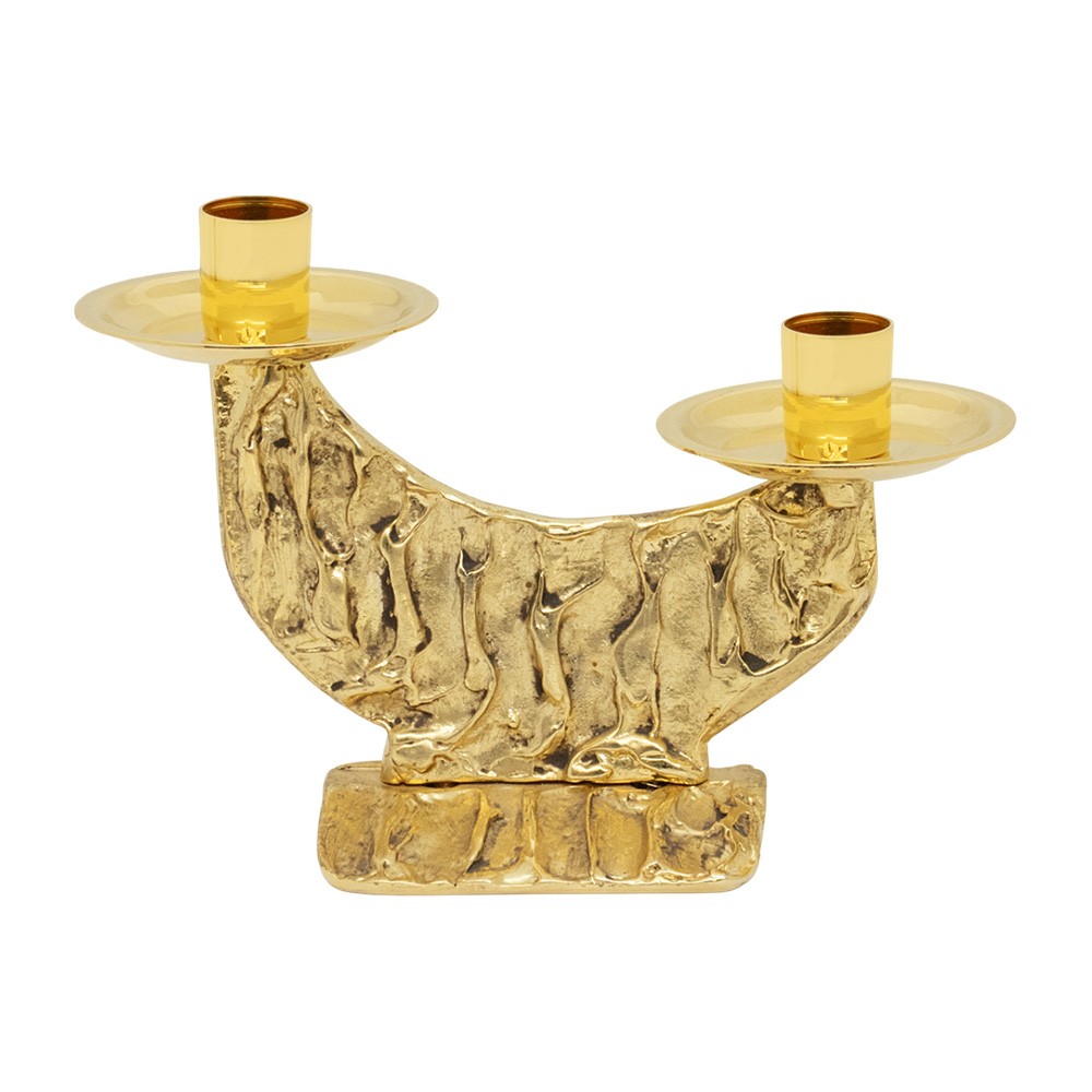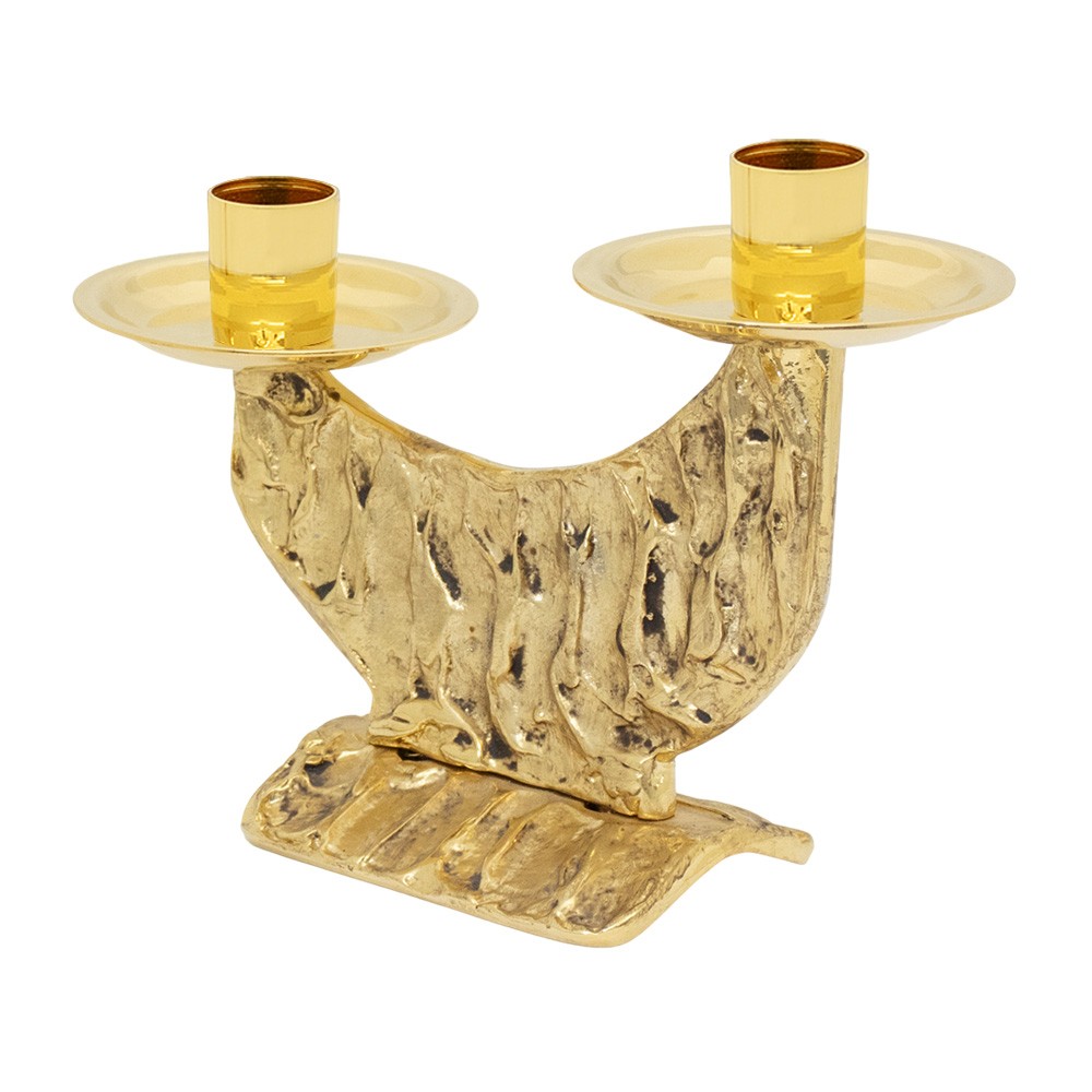 Candeliere da altare 9 fiamme, in ottone lucido, h 30 cm.