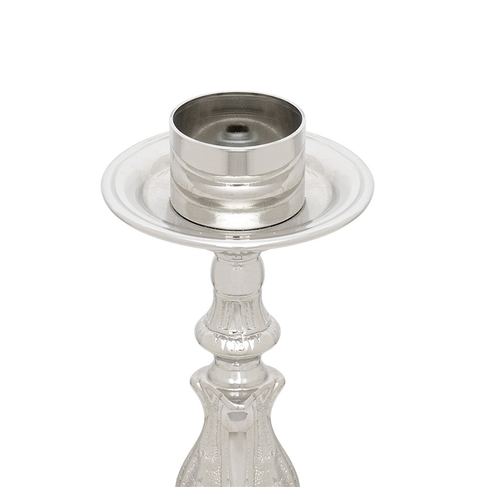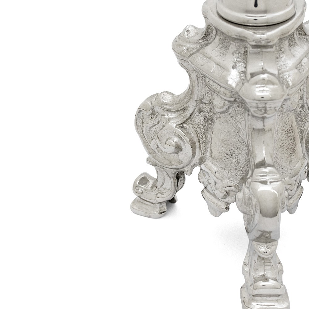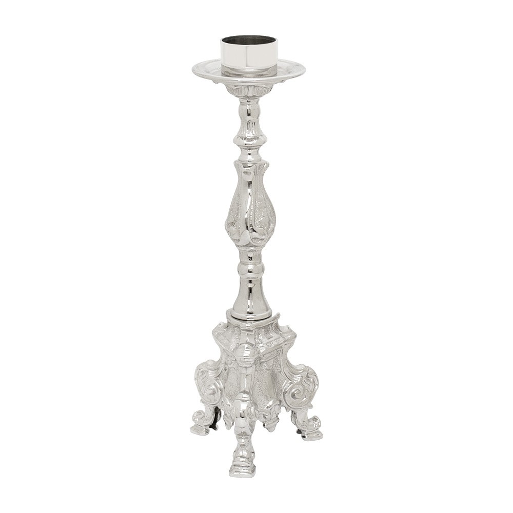 Candeliere per altare modello Rococo, alto circa 30 cm. Completo di bossolo per finta candela (Ø 4 cm).