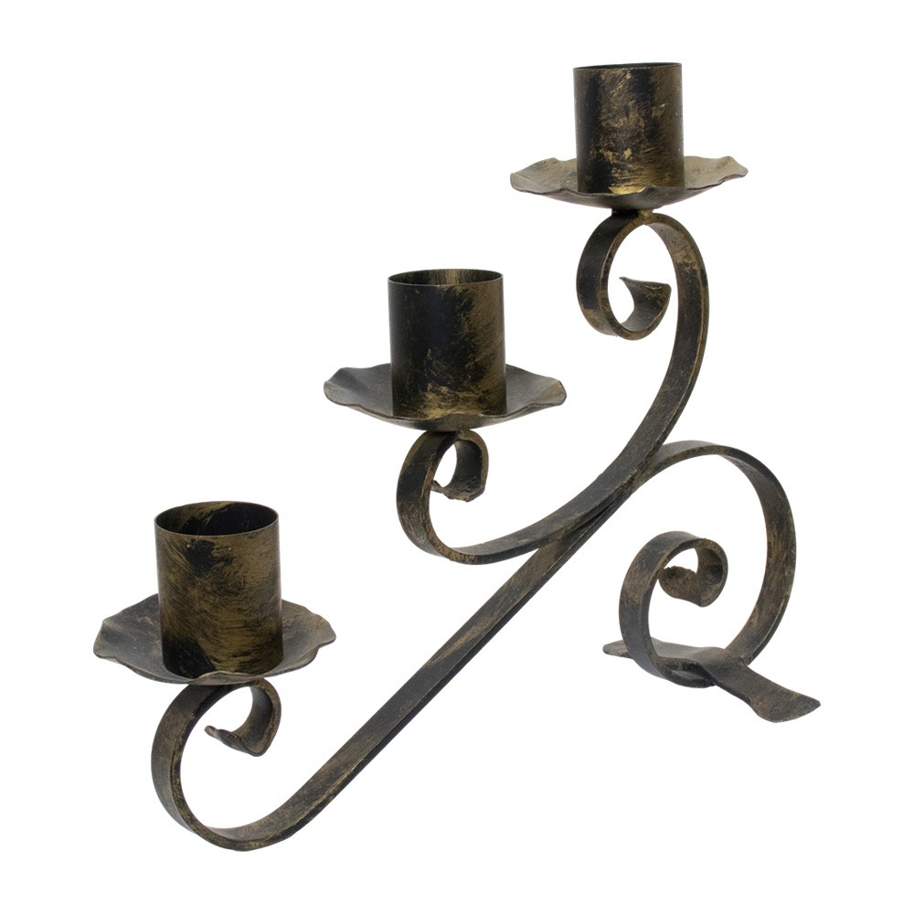 Candeliere da altare modello "TRE FIAMME" realizzato interamente in ferro battuto.