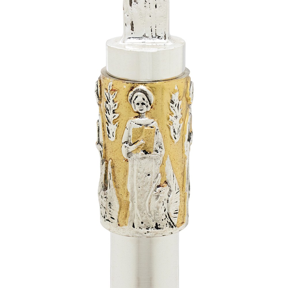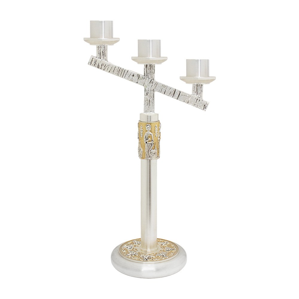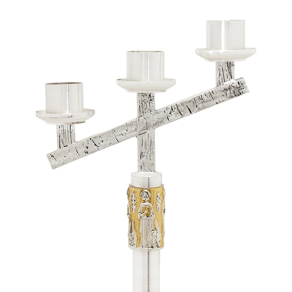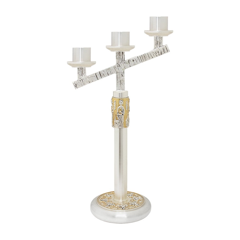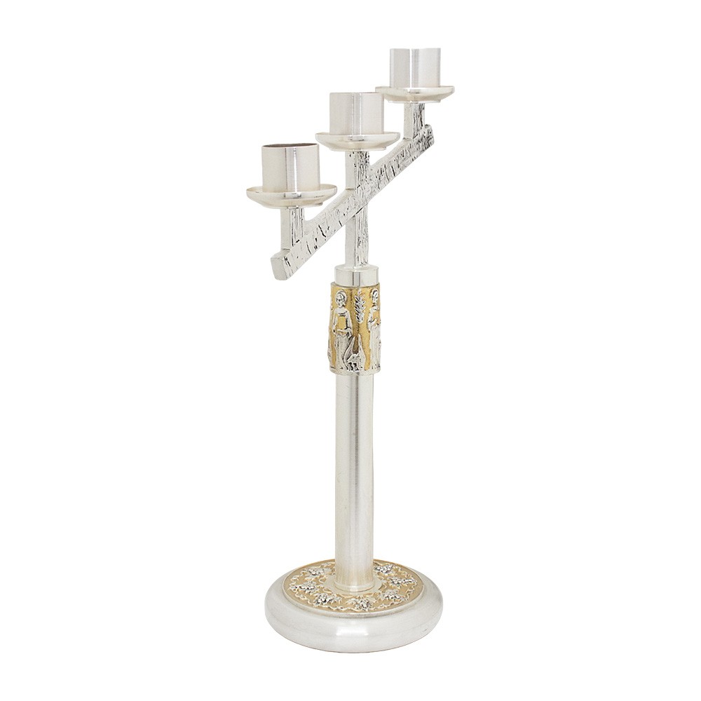 Candeliere da altare modello 3 fiamme con decoro in rilievo dei 4 Evangelisti.